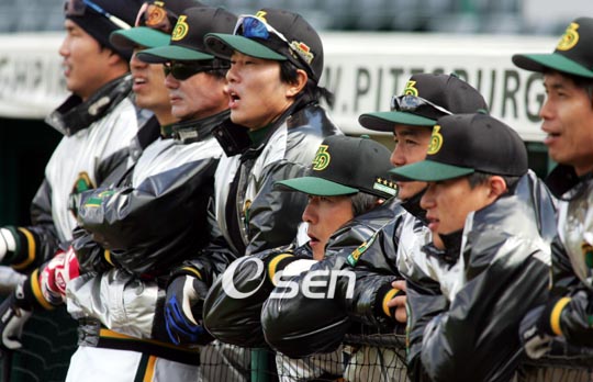 "그런데 현대는 어떻게 되는 겁니까?". LG 트윈스와 야쿠르트가 평가전을 벌이던 지난 27일 일본 오키나와 우라소에 구장. 경기 전 만난 일본 교도통신 기자가 얘기 도중 불쑥 던진 질문이다. 현대 유니콘스라는 야구팀이 한국에 있는지조차 알까 싶었는데 이 기자는 '현대 사태'의 돌아가는 상황을 꿰차고 있는 듯했다. 그는 "이대로 가면 현대는 없어지는 것이냐? 그러면 7개 구단으로 올 시즌이 운영되는 것이냐" 등 '난처한' 질문을 계속 던졌다. 아울러 일본 기자들은 일본 구단과 한국 구단이 연습경기를 가지면 "WBC(월드 베이스볼 클래식) 멤버가 여기 누구 있냐"라고 꼭 묻는다. SK의 경우엔 "일본전서 멋진 수비를 보여준 바로 그 우익수 아니냐"며 이진영을 바로 알아봤다. LG전 때도 일본 기자는 박용택-봉중근-박명환 등 WBC 멤버에 관심을 표시했다. 특히 봉중근은 빅리그에서 컴백한 경력에다 이날 2이닝 무실점의 '깔끔투'를 펼치자 더 주목을 받았다. 일본의 '변방' 오키나와에서 현대 사태와 WBC를 묻는 일본 기자들을 보며 '야구의 세계화'를 새삼 실감했다. 아울러 '이제 일본이 더 이상 한국을 무시하지 않는 만큼 향후 이기기도 더 힘들어졌구나'라는 생각도 들었다. sgoi@osen.co.kr 현대의 플로리다 브래든턴 전지훈련 모습.