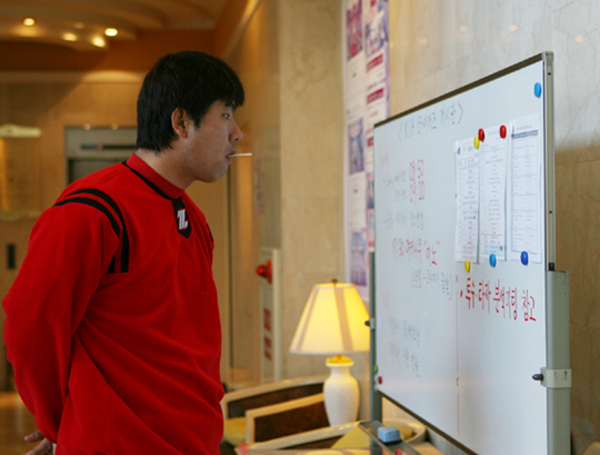 KIA 왕년의 4번타자 홍세완(30)이 달라졌다. 미야자키 캠프에 참가 중인 KIA 선수들 가운데 가장 방망이를 잘 돌리는 선수를 꼽으라면 단연 홍세완을 거론하고 있다. 이건열 타격코치는 "아직 실전 성적이 좋지는 않지만 컨디션이 예년과는 완전히 다르다. 올해는 홍세완이 많이 달라질 것 같다"고 말했다. KIA 타선 폭발에 온힘을 기울이는 서정환 감독은 물론 KIA 팬들에게도 반가운 소식이 아닐 수 없다. 홍세완은 상대투수들이 까다롭게 여기는 타자로 평가받아왔다. 변화구에 대한 순간 대처능력이 뛰어나고 몸쪽 바깥쪽 모두 공략이 가능한 몇 안되는 타자이다. 2003년 22홈런 100타점을 기록했을 만큼 재질이 뛰어나다. 그러나 매년 부상으로 빠지며 컨디션 조절에 어려움을 겪었다. 손목 골절상부터 무릎 허리 중이염 팔꿈치 수술 등 다양한 부상을 겪어왔다. 지난해 운동선수로는 희귀한 '기흉' 때문에 고생했다. 스스로 지겨울 정도라고 말했고 그를 보는 코칭스태프의 속은 새카맣게 타들어갔다. 부상으로 자꾸 제자리 걸음을 하는 가운데 동갑나기 장성호는 9년 연속 3할타율과 40억원이 넘는 FA 잭팟을 터트렸다. 자신의 텃밭이었던 유격수 이현곤이 넘보고 있다. 위기를 느낀 홍세완은 겨우내 훈련을 매달려 풍선 같았던 체중을 뺐다. 이번 미야자키 캠프에서도 부상없이 완벽하게 훈련을 소화하고 있다. 지난 1일까지 자체 평가전 및 일본 팀과의 연습경기 성적은 타율 2할5푼(35타석 28타수 7안타) 1홈런 2타점을 기록, 평범한 성적표를 기록했다. 그러나 1일 야쿠르트 2군과의 연습경기에서는 시원한 마수걸이 솔로홈런을 터트리고 2007시즌을 향해 포효하기 시작했다. 서정환 감독은 "세완이가 제자리를 찾는다면 얼마나 좋겠는가. 캠프에서 훈련도 잘 소화하고 컨디션도 좋아보인다. 그동안 부상 때문에 고생했지만 올해는 좋은 활약을 해줄 것으로 믿고 있다"고 강한 기대감을 표시했다. sunny@osen.co.kr 홍세완이 전훈지 숙소에서 스케줄을 확인하고 있다./KIA 타이거즈 제공.