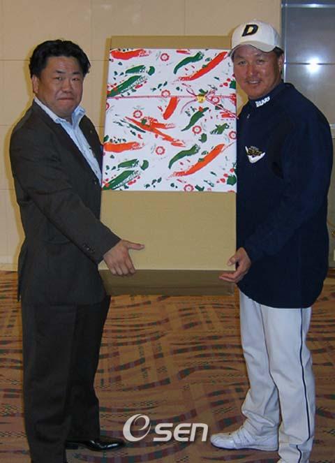 "감바테 구다사이". 김경문 두산 감독이 베이징 올림픽 예선 대표팀 감독으로 부임하자 미야자키 캠프지는 환호와 기대감으로 충만했다. 두산은 좋은 징조로 받아들이고 있고 선수들도 축하를 아끼지 않았다. 숙소인 호텔에서는 선물도 주고 조촐한 축하식도 갖기로 했다. 두산 구단은 김경문 감독의 부임을 구단의 명예를 높일 수 있는 일이라고 반기고 있다. 김 감독은 구단 측의 결정에 따르겠다고 말했고 구단은 흔쾌히 허락했다. 김승영 단장은 "이게 올 시즌 앞두고 좋은 징조가 아니겠는가. 정말 축하할 일이다"고 활짝 웃었다. 두산은 두 명의 대표팀 감독을 배출했다. 전임 사령탑 김인식 감독이 지난 2002년 부산 아시안게임 대표감독을 금메달을 따냈다. 이번 김경문 감독은 올림픽 대표 감독이 됐다. 김승영 단장은 "비록 예선 통과가 쉽지는 않지만 김경문 감독의 능력과 복이 큰 일을 낼 것"이라고 기대했다. 부임 소식을 듣자마자 호텔측에서도 발빠르게 움직였다. 가와사키 히로아키 영업부장이 골프황제 타이거 우즈의 방문을 기념해 만든 한정 골프백을 즉석에서 선물하며 "꼭 좋은 성적을 올리길 바란다"고 응원했다. 여기에 그치지 않고 7일 축하 케이크를 전달하겠다는 의사를 전달했다. 선수들은 감독이 훈련 도중 통보를 받은 탓에 6일 저녁까지는 몇몇 선수들만 알고 있었지만 한국에서 전해진 뉴스를 듣고 모두 알게 됐다. 홍성흔 주장을 중심으로 선수단은 부임 축하와 함께 선전을 기원할 것으로 보인다. sunny@osen.co.kr