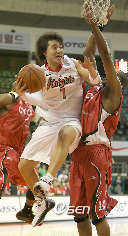 올 시즌 창원 LG에 압도적인 우위를 보인 서울 SK가 루 로와 임재현의 활약으로 6위싸움서 한 발 앞서갔다. SK는 7일 서울 잠실학생체육관에서 벌어진 2006~2007 현대모비스 프로농구 홈경기에서 3점슛 4개 포함 14 득점을 올린 임재현(5어시스트)과 29득점을 올린 루 로의 활약으로 찰스 민렌드(28득점, 4리바운드)가 분전한 LG를 90-86으로 꺾었다. 이로써 SK는 이날 인천 전자랜드에 패한 원주 동부를 앞서면서 공동 6위로 올라서 6강 플레이오프 진출의 꿈을 이어갔고 LG는 연승 행진을 6게임으로 마감했다. 6강 플레이오프에 진출하기 위해 독기를 품고 나온 SK는 김기만이 3점포로 경기의 포문을 연 뒤 1쿼터에만 5개의 3점슛을 터뜨리며 앞서나갔다. LG는 조상현과 박지현의 득점으로 따라갔지만 초반부터 외곽포가 불이 붙은 SK가 29-14로 1쿼터를 리드했다. 2쿼터가 시작되자 SK는 수비에 비중을 두며 숨고르기에 들어갔다. 올 시즌 정규리그에서 LG에 4승 1패를 거두며 강한 모습을 보여주고 있던 SK는 그동안 문제점으로 지적되던 수비가 잘되면서 상대의 턴오버를 유발, 2쿼터 중반 45-25 20점차로 벌렸다. 그러나 7연승을 노리고 있던 LG도 가만히 당하고 있지는 않았다. 2쿼터 2분을 남겨놓고 민렌드가 연속으로 득점, 추격을 시작한 LG는 수비도 먹혀들어 스코어차를 좁혀 47-38로 전반을 마무리했다. 전반 리바운드서 15-9로 밀린 LG는 3쿼터에 부상에서 돌아온 현주엽을 투입하며 골밑 수비를 강화했다. 하지만 SK는 느려진 LG를 상대로 김기만의 연속 3점포 등 2쿼터 주춤했던 외곽슛을 다시 터트리면서 점수를 또 벌리기 시작했다. 3쿼터 종료 시 스코어는 75-62. LG는 4쿼터 들어 이현민과 파스코를 앞세워 반격을 시도했다. 파스코가 네 번째 파울을 기록하며 잠시 주춤하긴 했지만 외곽포로 추격, 4쿼터 3분경 83-77로 따라붙은 뒤 전면 강압수비를 펼치면서 스틸에 이은 득점으로 역전까지 노렸다. 경기 1분을 남겨놓고 LG는 박규현의 스틸에 이은 박지현의 득점과 민렌드의 3점슛으로 88-86을 만들며 턱밑까지 쫓아갔지만 거기까지였다. SK의 방성윤이 11초를 남기고 자유투 2개를 모두 성공시키면서 90-86으로 승부는 끝났다. ◆ 전적 서울 SK 90(29-14 18-24 28-24 15-24)86 창원 LG 10bird@osen.co.kr 방성윤이 리바운드를 잡아낸 뒤 밖으로 볼을 패스하고 있다./잠실학생체=김영민 기자ajyoung@osen.co.kr