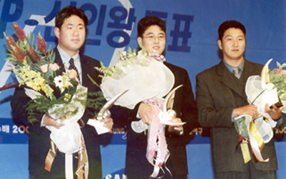현대 '18승 삼총사'의 동반 부활이 쉽지 않을 듯하다. 겨우내 현대의 플로리다와 가고시마 스프링캠프의 주목 포인트 가운데 하나는 '18승 트리오'의 재기 여부였다. 지난 2000년 우승 당시 선발투수로 나란히 18승을 거두고 우승을 이끌었던 정민태(37) 임선동(34) 김수경(29)이 모두 부진을 딛고 재기를 노크했다. 아직 시즌 개막이 한 달 가까이 남았지만 벌써부터 이들 삼총사의 성적표가 달라지고 있다. 김수경은 선발로테이션에 합류할 가능성을 높여주고 있다. 그러나 나머지 두 선수는 재기 가능성에 대해 의문을 표시하는 목소리들이 나오고 있다. 이에 대해 김시진 감독은 자신의 속내를 이렇게 밝혔다. 이들은 자신이 투수코치 시절 애지중지했던 선수들이었고 서로 교감이 있는 사이다. 그는 "실제로 수경이는 올해 좋은 활약을 펼칠 수 있을 것이다. 하지만 (정)민태와 (임)선동이는 아직은 정상적인 컨디션은 아니다"고 말했다. 이어 "두 선수에게 충분한 기회를 줄 것이다. 정민태만 해도 4차례 우승에 결정적인 활약을 했던 선수다. 임선동은 LG와 해외진출 파동을 놓고 문제가 있었고 현대에서도 유난히 굴곡있는 선수생활을 했다. 이런 선수들은 마지막까지 대접을 해야 된다"고 말했다. 다만 이같은 배려에는 전제조건이 있다. 바로 이들이 재기 가능성에 대해 스스로 정확한 판단을 내리기를 바라는 점이다. 김 감독은 "이들의 재기를 바라는 기대가 나보다 큰 사람은 없을 것이다"며 "그러나 스스로 아니라고 느낀다면 그만 두어야 할 것이다. 감독이 안된다고 말하는 것보다는 스스로 결정하길 바란다"고 의미있는 말을 했다. 이 말은 곧 김 감독 역시 정민태와 임선동의 재기 가능성에 대해 큰 점수를 주고 있지 않다는 것으로 풀이된다. 다만 해결방식을 놓고 김감독이 결정하기 보다는 스스로 판단케 하는 방법을 택하고 있다. 아무래도 올해 1군 마운드에서 18승 삼총사들의 피칭을 동시에 보기는 어려울 전망이다. sunny@osen.co.kr 임선동-김수경-정민태가 지난 2000년 부문별 시상식서 다승왕을 공동 수상하고 포즈를 취한 모습=현대 유니콘스 제공.