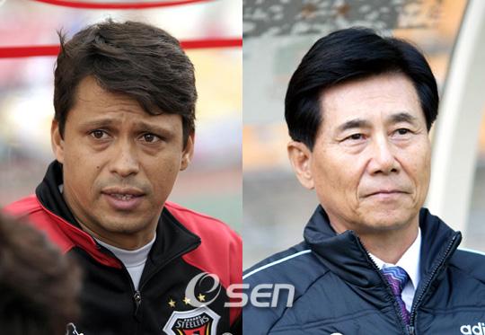 K리그 개막 후 2연승을 달리며 리그 단독 선두에 나선 포항이 제대로 된 상대를 만났다. 바로 오랫동안 K리그 최고의 라이벌이었던 울산 현대다. 소위 '동해안더비' 를 펼쳐온 양 팀이 14일 울산에서 리그컵 경기인 하우젠컵 2007 첫 경기에서 맞붙게 되었다. 포항은 파리아스식 공격 축구가 제대로 정착하며 리그 2연승을 달렸다. 모든 선수들이 공격적인 마인드를 가지고 전방을 향해 달렸고 짧고 정확한 패스를 바탕으로 경기를 풀어나갔다. 또한 지난 시즌 상대적으로 약한 모습을 보였던 인천과 경남 등 많이 뛰는 팀에게도 여유로운 모습을 보이며 완승을 이끌어냈다. 선수들의 경험이 쌓이면서 여유로운 모습을 보여주고 있다. 경남과의 경기에서 이광재가 2골을 몰아쳤고 플레이메이커 따바레즈도 2도움을 기록했다. 여기에 고기구, 오범석, 김기동 등의 공격력도 물이 올랐다는 평가다. 울산은 올 시즌 들어 1승 1무를 기록했다. 첫 경기에서 경남과 1대1로 비기며 첫 출발이 좋지 않았으나 대전과의 K리그 2라운드에서 공격력이 폭발하며 3-1 완승을 거두었다. 성남에서 울산으로 이적한 우성용이 2경기에서 1골 1도움을 기록하며 물오른 공격력을 보여주고 있고 오장은이 중앙을 든든히 지켰다. 하지만 이번 경기에서는 오장은이 올림픽대표팀 차출로 인해 결장해 허리에 힘이 떨어질 것으로 보인다. 또한 파리아스 감독과 김정남 감독의 지략 대결도 관심을 끈다. 파리아스 감독은 한국 진출 2년 만에 공격 축구로 K리그에 신선한 바람을 불러일으키고 있다. 반면 김정남 감독은 현재 K리그 최고령(64세) 감독으로 인덕과 경험으로 울산을 이끌고 있다. 이 경기는 14일 오후 7시 울산 문수 월드컵경기장에서 펼쳐진다. bbadagun@osen.co.kr 파리아스 포항 감독-김정남 울산 감독.