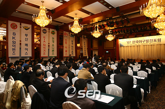 13일 서울 올림픽 파크텔에서 열린 한국야구 발전 포럼에서 위기의 한국 야구를 살리기 위한 다양한 아이디어가 쏟아졌다. 이날 포럼에는 8개 구단 단장을 비롯해 야구 관계자와 학계 언론계 등이 참가해 활발한 토론을 펼쳤다. 이날 토론에서 가장 화제가 된 것은 대구시의 2013년 월드베이스볼클래식(WBC) 유치 계획 발표였다. 박일환 대구시 체육시설 담당은 보고서를 통해 '2007년까지 노천구장(1500억 원 예상)과 돔구장(4000억 원 예상) 중 선택을 마친 뒤 2008년부터 2011년까지 건축한다'는 계획을 밝혔다. 대구시는 이를 위해 부지는 시가 제공하고 건축은 민간자본 유치 및 국고 지원 등을 기대하고 있다. 민간자본 투여 시에는 수익사업도 허용한다는 방침이다. 대구시는 이달 말 유치의향서를 한국야구위원회(KBO)에 제출한다. 개최지는 MLB 사무국, KBO 등이 참여한 운영위원회에서 투표로 결정될 예정이다. 한양대 김종 교수는 마케팅 역량 강화 방안에 대해 다양한 대안을 제시했다. "현재 모기업의 지원에 의존하고 있는 현실에서 모기업 주력사업의 산업분야와 연계한 수익모델 개발을 필요하다"며 모기업 주력사업과의 연계한 수익 모델을 개발해야 한다고 역설했다. 스타선수들을 탤런트화해 팬과 선수간에 거리를 좁히자는 제안도 나왔다. 김 교수는 "스타 선수들이 블로그나 미니 홈피 등 쌍방향적인 커뮤니케이션을 통한 팬들과 대면할 수 있는 기회를 확대돼야 한다"고 지적했다. 프로야구의 근간인 아마 야구를 활성화시켜야 한다는데 한 목소리를 모았다. 먼저 실업리그의 활성화를 꼽았다. 현재 사회인 야구팀이나 직장인 야구팀에서 리그전이 거의 없는 상황에서 도시 대항전을 개최해 팬들의 관심을 유도해야 한다는 의견도 나왔다. 프로 입문에 실패한 선수들의 구제 방안으로 구단 계열사 공채시 단순직에 한해 선수출신을 특채해야 한다는 의견도 제시됐다. 프리에이전트(FA)제도에 대해 큰 의견차를 보였다. 현행 FA제도는 9년이지만 군문제라는 특수한 상황으로 인해 실질적인 FA기간은 11-12년에 가까워 선수 입장에서는 실제적인 FA 행사에 어려움이 있다는 지적이 나왔다. 반면 구단측은 구단 운영에 부담이 되고 있는 높은 몸값에 대한 개선책을 찾자는 의견을 내놨다. 신분이 불안정한 아마추어 야구부 지도자의 정규직화를 통한 처우 개선과 학부형의 경제적 부담을 덜어주기 위해 급식 지원비 등 공제 방안도 마련돼야 한다는 의견도 나왔다. 또 청소년 진흥기금 국민체육기금 야구 토토 수익금 등 공단기금 활용과 여자야구팀의 적극적인 지원과 T볼 강습회 확대, 아마선수를 대상으로 선수증을 발급해 경기 무료 입장 등의 혜택을 줘야 한다는 의견도 나왔다. 이밖에 ▲샐러리캡 도입 ▲주중 5경기로 경기 수 조정 ▲WBC 유치위원회 설립 등 다양한 의견이 제시됐다. what@osen.co.kr 한국야구위원회 주최 '2007 한국야구 발전 포럼'이 13일 오전 서울 올림픽파크에서 열렸다.