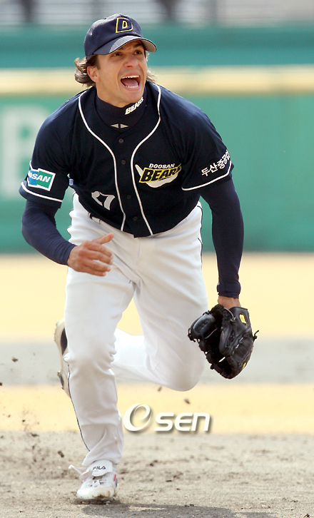 17일 2007프로야구 시범경기가 수원 광주 마산 제주에서 일제히 막이 올랐다. 수원에서 벌어진 현대 유니콘스와 두산 베어스의 경기는 최준석의 결승타를 끝까지 지킨 두산이 현대에 1-0으로 승리했다. 2회말 2사 후 현대 유한준의 타구가 방망이가 부러지며 어중간한 곳으로 굴러가자 선발 투수 리오스가 혼신의 힘을 다해 달려가고 있다./수원=손용호 기자spjj@osen.co.kr