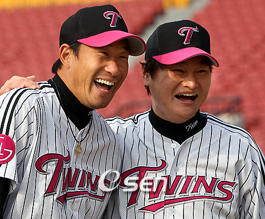 드디어 베일을 벗는다. LG 트윈스가 지난 해 심혈을 기울여 보강한 전력의 핵인 우완 투수 박명환(30)과 좌완 투수 봉중근(27)이 국내무대에 첫 선을 보인다. LG는 18일 마산구장에서 갖는 롯데와의 시범경기 2번째 경기에 박명환과 봉중근을 출격시킬 예정이다. 올 시즌 에이스 노릇을 해줄 것으로 기대되는 박명환은 선발 출장할 예정이고 선발 및 마무리 후보인 봉중근은 구원투수로 마운드에 오를 전망이다. 봉중근은 전날 개막전에 불펜에서 몸을 풀었으나 날씨가 쌀쌀해 등판하지는 않았다. 지난 해 12월 LG 유니폼을 입은 박명환은 그동안 한 번도 정식경기에 등판하지 않고 실력을 감추고 있었다. LG 코칭스태프는 사이판과 일본 전지훈련을 거치면서 페이스가 조금 늦은 박명환을 실전에 거의 등판시키지 않았다. 박명환이 FA 계약문제로 다른 투수들보다 보름가량 몸과 구위 컨디션이 늦어졌다. 또 전력 노출을 꺼린 LG 코칭스태프가 전지훈련 막판 라이벌 삼성을 비롯해 SK 등과 가진 오키나와 연습경기서도 박명환은 마지막 삼성과의 평가전(2이닝 무실점)서 딱 한 번 등판했을 뿐이었다. 따라서 4년 계약에 최대 40억원의 거액을 받고 서울 라이벌 두산에서 LG 유니폼으로 갈아입은 박명환이 18일 시범경기서 팬들에게 첫 선을 보이는 것이다. 시즌 중이었던 작년 5월 빅리그 생활을 접고 13억5000만원에 LG와 계약, 한국무대로 돌아온 봉중근도 18일 롯데전서 공식경기 첫 등판을 가질 예정이다. 마무리 투수가 아직 확정되지 않은 LG 투수진에 강력한 소방수 후보로 떠오르며 테스트를 받고 있다. 빅리그에서도 중간 계투요원으로 뛴 경험이 있는 봉중근이 어떤 활약을 보여주느냐에 마무리 투수로서 가능성이 달려 있다. 봉중근 전지훈련 SK와의 연습경기에서 등판해 국내 타자들과 대결 경험이 있다. 한편 롯데도 이날 선발 투수로 미국무대에서 뛰다가 복귀한 우완 투수 최향남(36)을 등판시킬 예정이어서 올 시즌 새로 얼굴을 보여주는 3명의 투수들이 경연을 벌일 전망이다. sun@osen.co.kr LG 유니폼을 입고 공식경기에 첫 선을 보이는 박명환(오른쪽)과 봉중근