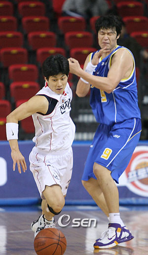 인천 전자랜드가 서울 삼성에게 승리를 거두고 6강 플레이오프 진출 희망을 이어갔다. 또 원주 동부는 창원 LG에게 패하면서 7위로 내려앉았다. 그리고 부산 KTF는 오리온스에 접전 끝에 승리를 거두면서 30승 고지에 올랐다. 인천 전자랜드는 18일 서울 잠실실내체육관에서 열린 2006~2007 현대모비스 프로농구 원정경기에서 샘 클랜시(23득점, 13리바운드)와 3점슛 4개를 성공시킨 정선규(18득점, 3스틸)의 활약으로 4위 삼성에 100-92로 승리를 거뒀다. 전반을 앞서며 끝낸 전자랜드는 삼성의 이규섭에게 3점포를 맞으며 3쿼터 한때 삼성과 장군멍군의 접전을 벌였지만 4쿼터 2분을 남기고 이날 승리의 수훈갑 정선규의 3점포에 힘입어 삼성을 눌렀다. 전자랜드는 3점슛을 12개나 성공시키면서 삼성을 상대로 창단 후 첫 원정승을 거뒀고 시즌 22승 30패를 기록하며 공동 6위권과 승차를 반 게임 차로 좁히면서 남은 2경기에서 6강 플레이오프 진출 여부를 가리게 됐다. KT&G와 공동 6위였던 동부는 김주성과 양경민을 투입하는 강수를 두고도 2위 창원 LG에 패하면서 7위로 내려앉았다. LG는 종료 1분을 남겨놓고 동부에 69-67로 불안하게 리드하고 있었다. 그러나 승리의 주역인 조상현이 경기 15초를 남기고 승부에 쐐기를 밖는 결정적인 3점슛을 성공시키면서 72-67로 승리를 거뒀다. 이 경기에서 김주성은 KBL 최초로 500블록슛을 성공했으나 팀의 패배로 빛이 바랬다. KTF는 대구에서 열린 오리온스와의 원정경기에서 애런 맥기(32득점, 10리바운드), 송영진(25득점, 3점슛 2개), 신기성(18득점, 9어시스트)의 활약으로 김승현과 피트 마이클이 빠진 오리온스에 접전 끝에 91-86으로 승리를 30승 고지에 오르며 단독 3위를 지켰다. 이로써 공동 4위를 달리고 있던 오리온스와 삼성은 모두 패해 치고 나가지 못했다. 한편 울산에서 열린 모비스와 KCC의 대결에선 모비스가 4쿼터 좋은 활약을 펼친 크리스 버지스(21득점, 17리바운드)와 김효범(17득점, 3리바운드)의 활약에 힘입어 마르코 킬링스워스(33득점, 23리바운드)가 분전한 KCC에 79-77로 승리했다. ■ 18일 전적 ▲ 서울 인천 전자랜드 100 (34-25 21-25 19-20 26-20) 92 서울 삼성 ▲ 창원 창원 LG 72 (15-13 18-14 14-21 25-19) 67 원주 동부 ▲ 대구 부산 KTF 91 (29-18 19-33 15-17 28-18) 86 대구 오리온스 ▲ 울산 울산 모비스 79 (23-23 24-13 15-22 17-19) 77 전주 KCC 10bird@osen.co.kr 전자랜드-삼성의 지난 1월 24일 인천 경기서 정선규가 이규섭을 따돌리고 볼을 잡아내는 장면.