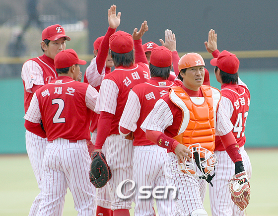 한화 특유의 다이너마이트 타선이 폭발했다. 한화 외국인타자 크루즈와 현대 전준호, 이택근이 각각 3안타의 맹타를 휘둘렀다. 현대 외국인 투수 캘러웨이는 무려 8실점했고 한화 우완투수 유원상도 1회에 무너졌다. 한화 조성민은 1이닝 퍼펙트 피칭을 했다. 한화는 20일 대전구장에서 열린 현대와의 시범경기에서 홈런 2개 포함 장단 15안타를 퍼붓고 10-6으로 이겼다. 현대도 송지만의 9회초 솔로홈런 등 13안타를 쳤지만 일찌감치 내준 승기를 되찾지 못했다. 한화는 시범경기 2승1패을 기록했고 현대는 3전 전패를 당했다. 한화는 1회초 유원상의 부진으로 먼저 3점을 내줬으나 1회말 김태완의 투런홈런을 시작으로 뒤집기에 나섰다. 2회말 고동진의 2타점 2루타 등 5안타를 집중시켜 3득점, 역전에 성공한 뒤 4회말 이영우의 2타점 우월 3루타 등 석점을 보태고 승기를 잡았다. 톱타자 고동진이 2안타, 2번 이영우는 3루타 포함 2안타 2타점, 3번 크루즈는 3타수 3안타 등 1~3번 타자들이 5회까지 7안타를 합작했다. 크루즈는 5타석 무안타 행진을 마감했고 김태균 대신 4번으로 기용된 2년차 김태완은 1회 투런홈런을 날려 장타력을 과시했다. 연경흠도 7번타로 5회 솔로홈런 포함 2안타를 터트렸다. 현대 선발 캘러웨이는 이날 4이닝 동안 11안타(1볼넷)를 맞고 8점을 내주는 부진을 겪었다. 지난 13일 KIA와의 광주 연습경기에서도 3이닝 8안타 6실점에 이어 시범경기 첫 등판에서도 난타당했다. 아직은 제구력과 변화구가 날카롭지 못한 모습을 보여주었다. 한화 선발 유원상은 1회 연속 4안타과 볼넷 2개, 실책까지 겹쳐 3실점했다. 2사 만루 대량실점 위기까지 몰렸으나 정수성을 2루땅볼로 잡고 마운드에서 내려왔다. 왼손 검지에 물집이 생겨 정상적으로 볼을 뿌릴 수 없었고 2회부터 안영명에게 마운드를 넘겼다. 한화는 안영명이 4이닝 3안타 무실점, 조성민이 1이닝 무실점으로 현대 타선의 재반격 의지를 제압했다. 현대는 8회초 무사 만루에서 이태근의 2타점 우전안타로 두 점을 보탰다. 이택근이 3안타 3타점, 노장 톱타자 전준호도 첫 타석부터 내리 3연속 안타를 터트리는 등 제 몫을 했다. sunny@osen.co.kr