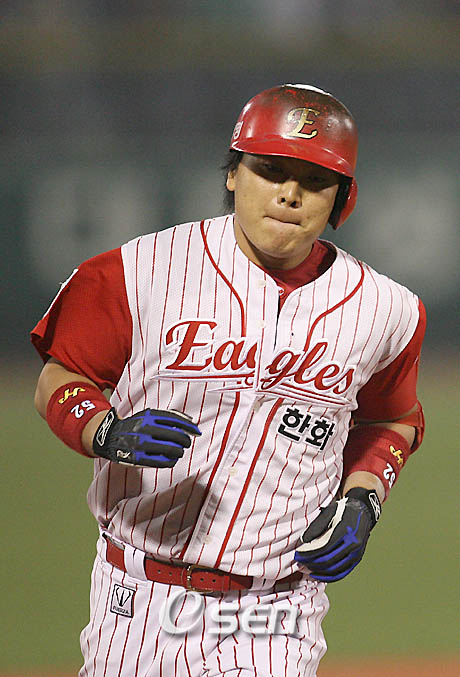"우리도 이승엽-심정수 선배 처럼 경쟁하자". 한화 4번타자 김태균(25.내야수)이 동갑내기 홈런왕 이대호(25.롯데)에게 '제2의 이승엽-심정수 경쟁체제'를 재현하자고 제의했다. 한국야구의 현재와 미래를 짊어지고 있는 25살 젊은 파워타자들의 경쟁구도 형성은 올시즌 또 하나의 관전거리가 될 듯 싶다. 김태균은 21일 대전구장에서 열린 현대와의 시범경기에 출전해 135m짜리 장외홈런 포함 4타수3안타 4타점을 기록했다. 경기후 김태균은 "이제 내가 이대호에게 도전하는 처지가 됐다. 나와 대호가 함께 예전의 심정수-이승엽 선배처럼 경쟁하면 홈런수가 많이 늘어날 것"이라고 깜짝 제의를 했다. 두 선수는 2005년까지는 경쟁자가 아니었다. 김태균이 실력이나 이름값에서 모두 앞섰으나 지난해 이대호가 타격 4관왕에 오르며 단숨에 최고타자 반열에 올랐다. 올해는 김태균이 내심 홈런왕에 도전장을 내밀어 두 선수의 경쟁체제가 비로소 시작되고 있다. 이날 한화의 4득점은 모두 김태균의 방망이에서 나왔다. 0-0이던 1회말 1사2,3루에서 현대 선발 장원삼으로부터 3유간을 빠지는 2타점 적시타를 터트렸다. 이어 2-3으로 뒤진 3회말 2사1루에서 장원삼의 바깥쪽 높은 직구를 끌어당겨 대전구장 밖으로 날아가는 좌중월 장외홈런을 날렸다. 공식기록원은 비거리를 135m로 측정했다. 김태균은 9회말 마지막 타석에서는 좌중간 담장을 맞히는 2루타를 작렬했다. 지난 17일~18일 삼성과의 제주 시범경기에서 9타수2안타를 기록했으나 타점은 올리지 못했다. 전날 현대전에서 컨디션 조절을 위해 하루 휴식을 취한 뒤 출전한 이날 경기에서는 첫 타석부터 불을 뿜었다. 김태균은 "예년 같으면 스프링캠프 도중 방망이무게를 1kg에서 950g으로 줄였을 텐데 올해는 힘이 들지 않아 그대로 1kg짜리를 쓰고 있다. 체력훈련을 많이 한 덕을 보는 것 같다. 아직 실전감각이 떨어졌으나 오늘을 시작으로 좋아졌다"고 밝에 웃었다. 아울러 스트라이크존에 대해서는 "그동안 잘 몰랐는데 오늘은 상당히 좁아진 것을 확연히 느낄 수 있었다. 상대투수의 구질을 골라 칠수 있는 장점이 있는 것 같다"고 말했다. sunny@osen.co.kr