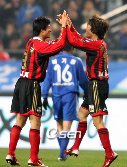 박주영이 해트트릭으로 포효했다. 세뇰 귀네슈 감독의 공격 축구로 무장한 FC 서울이 박주영을 앞세워 수원 삼성을 초토화시켰다. 서울은 21일 서울 상암 월드컵 경기장에서 열린 수원과의 삼성 하우젠컵 2007 대회에서 프로 데뷔 후 세번째 해트트릭을 기록한 박주영과 정조국의 한골에 힘입어 마토의 선제골에 그친 수원을 4-1로 대파했다. 이로써 올시즌 정규리그와 컵대회를 포함해 5연승을 기록한 서울은 삼성 하우젠컵 B조에서 선두로 나섰고 수원은 시즌 첫 패배를 당했다. 팽팽할 것 같던 경기는 전반 초반 수원의 이른 선제골로 요동쳤다. 4-3-3 포메이션으로 나온 수원은 전반 6분 마토가 헤딩골을 기록하며 1-0으로 앞서나갔다. 이관우가 올린 왼발 프리킥을 마토가 상대 수비진을 역이용해 들어가 헤딩슛으로 연결한 것. 전반 초반에 선제골을 내준 서울도 이을용과 이청용을 앞세워 공격을 풀어나갔고 빠른 시간 내에 만회골을 터뜨렸다. 전반 13분 김은중과 이청용이 만든 완벽한 찬스를 박주영이 페널티 에어리어 안에서 잡아 골로 연결한 것. 전반을 1-1로 마친 가운데 서울은 김진우와 이싸빅을 빼고 안효연과 최성환을 투입시키며 4-4-2로 시스템을 바꿔 공격을 강화한 수원을 몰아붙였다. 후반 6분 서울이 올린 프리킥을 수비수가 잘못 걷어냈고 페널티 에어리어에서 공을 잡은 박주영이 결승골로 연결한데 이어 불과 1분만에 이청용이 전방으로 연결한 스루패스를 최성환과 이운재가 좋지 않은 호흡을 보이며 처리를 미룬 것을 박주영이 달려가 골로 연결했다. 서울은 공격을 강화한 수원을 철저하게 막으며 승기를 잡아갔고 후반 42분 이민성의 어시스트에 이은 정조국의 추가골로 쐐기를 박았다. 한편 대구 FC를 이끌고 있는 변병주 감독은 프로 첫승을 거뒀다. 그것도 대구가 창단 후 단 한번도 이겨보지 못했던 울산 현대를 상대로였다. 대구는 전반 41분 박동혁에게 오른발 슈팅을 허용했지만 후반 17분 이근호가 페널티지역 왼쪽에서 올린 크로스를 하대성이 오른발 슈팅으로 연결하며 동점골을 뽑아낸 뒤 종료를 얼마 남겨두지 않은 후반 45분 동점골을 어시스트한 이근호가 페널티지역 오른쪽에서 오른발 슈팅을 터뜨리며 감격적인 승리를 따냈다. 또 인천 유나이티드 FC는 데얀의 동점골과 결승골에 힘입어 전북 현대를 2-1로 꺾고 대구전 승리에 이어 2연승을 거두고 A조 선두로 나섰고 포항도 후반 16분 황진성의 페널티킥으로 제주 유나이티드 FC를 1-0으로 꺾었다. 이밖에 대전과 경남 FC, 부산과 광주 상무는 1-1로 승부를 가리지 못했다. ■ 삼성 하우젠컵 2R (21일) ◆ A조 / 대구 (관중 2,672) 대구 2 (0-1 2-0) 1 울산 ▲ 득점 = 하대성 1호(후17분,도움 이근호) 이근호 1호(후45분·이상 대구) 박동혁 1호(전41분·울산) ◆ A조 / 포항 (관중 3,128) 포항 1 (0-0 1-0) 0 제주 ▲ 득점 = 황진성 1호(후16분,PK·포항) ◆ A조 / 전주 (관중 4,987) 전북 1 (0-0 1-2) 2 인천 ▲ 득점 = 김종경 1호(후10분,도움 장지현·전북) 데얀 2-3호(후17분,도움 드라간-후35분,도움 김상록·인천) ◆ B조 / 서울 상암 (관중 35,993) 서울 4 (1-1 3-0) 1 수원 ▲ 득점 = 박주영 1-2-3호(전13분,도움 이청용-후6분-후7분,도움 이청용·서울) 정조국 호(후42분,도움 이민성·이상 서울) 마토 1호(전6분,도움 이관우·수원) ◆ B조 / 대전 (관중 3,003) 대전 1 (1-0 0-1) 1 경남 ▲ 득점 = 정성훈 1호(전44분,도움 김창수·대전) 박성철 1호(후40분,도움 이용승·경남) ◆ B조 / 부산 (관중 1,105) 부산 1 (0-0 1-1) 1 광주 ▲ 득점 = 한정화 1호(후44분,도움 박성호·부산) 남궁도 1호(후42분,도움 이동식·광주) ■ 삼성 하우젠컵 순위 (21일 현재) ▲ A조 ① 인천 2승 (승점 6) 득 6, 실 4 / +2 ② 포항 1승 1무 (승점 4) 득 1, 실 0 / +1 ③ 제주 1승 1패 (승점 3) 득 2, 실 1 / +1 ④ 대구 1승 1패 (승점 3) 득 5, 실 5 / 0 ⑤ 울산 1무 1패 (승점 1) 득 1, 실 2 / -1 ⑥ 전북 2패 (승점 0) 득 1, 실 4 / -3 ▲ B조 ① 서울 2승 (승점 6) 득 9, 실 1 / +8 ② 수원 1승 1패 (승점 3) 득 5, 실 4 / +1 ③ 부산 2무 (승점 2) 득 1, 실 1 / 0 ③ 경남 2무 (승점 2) 득 1, 실 1 / 0 ⑤ 대전 1무 1패 (승점 1) 득 1, 실 5 / -4 ⑥ 광주 1무 1패 (승점 1) 득 1, 실 6 / -5 tankpark@osen.co.kr / bbadagun@osen.co.kr / what@osen.co.kr