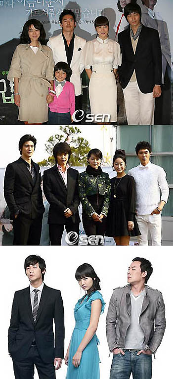지상파 방송 3사의 새 수목드라마가 일제히 포문을 열었다. 그리고 그 첫 흥행의 성적표가 나왔다. 한마디로 절대강자가 없는 ‘황금분할’이었다. AGB닐슨미디어리서치가 집계한 시청률 조사에 따르면 MBC TV ‘고맙습니다’, SBS TV ‘마녀유희’, KBS 2TV ‘마왕’은 어느 게 낫다는 판단을 하기가 불가능할 정도로 엇비슷한 성적표를 냈다. ‘고맙습니다’가 12.6%, ‘마녀유희’가 11.6%, ‘마왕’이 10.1%를 각각 기록했다. 향후 진행될 양상을 아무도 예측할 수 없는 성적이다. 이런 결과가 나온 배경에는 각 드라마가 저마다 뚜렷한 색깔을 갖고 있기 때문인 것으로 분석된다. 작품의 완성도나 배우들의 연기력은 어느 작품 할 것 없이 나무랄 데 없는 상황에서 시청자들의 기호가 어느 쪽으로 향했느냐가 근소하나마 차이를 가른 것으로 보인다. 이런 결론을 추론할 수 있는 근거는 성별 연령별 시청자 분포도 분석을 참조하면 분명해진다. 세 드라마의 시청자 중에서 50대 이상의 여성의 분포를 살펴보면 ‘고맙습니다’가 25%로 압도적으로 많고 그 다음이 ‘마왕’으로 18%, ‘마녀유희’가 17%를 기록했다. 결국 50대 이상 여성 시청자가 한 드라마에 집중적으로 몰리면서 세 드라마의 첫 승부가 갈린 셈이다. ‘고맙습니다’는 방영 전부터 수혈로 인한 에이즈 감염 장면이 논란이 되면서 ‘노이즈 마케팅 효과’도 어느 정도 작용한 듯하다. 결국 안방 시청자의 가장 강력한 파워집단으로 자리를 잡은 50대 이상 여성의 지지를 받은 ‘고맙습니다’가 유리한 고지를 선점한 것은 분명하지만 그 우위의 정도가 미미해서 앞으로의 결과는 아무도 예측할 수 없는 상황이 될 것으로 보인다. 100c@osen.co.kr 위에서부터 '고맙습니다' '마녀유희' '마왕'의 주요 출연진.