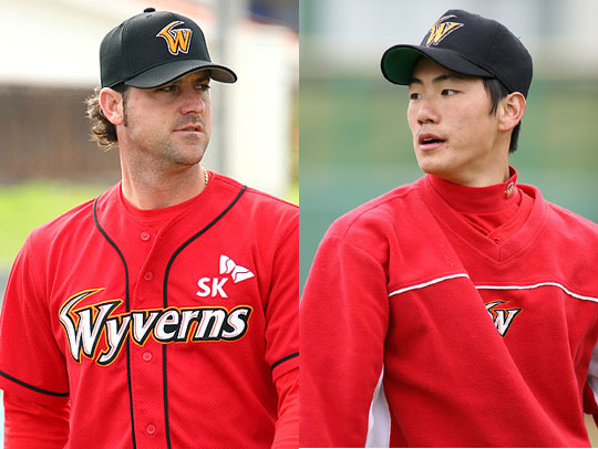 OSEN=인천, 박선양 기자]SK가 한층 강화된 투수진을 앞세워 기분좋은 4연승 행진을 펼쳤다. SK는 22일 인천 문학구장에서 열린 LG와의 시범경기에서 선발 로마노와 구원으로 나온 좌완 루키 김광현의 쾌투, 박경완의 홈런포 등에 힘입어 1-0으로 승리했다. SK 4연승. 반면 LG는 시범경기 전패로 5연패를 당했다. 올해 SK가 새로 뽑은 우완 정통파인 로마노는 국내무대 공식경기 첫 등판서 깔끔한 투구를 펼쳤다. 4이닝 동안 2피안타 1사구 5탈삼진 무실점으로 쾌투, 올 시즌 돌풍을 예고했다. 최고구속 시속 148km의 묵직한 직구와 예리한 슬라이더, 체인지업 등을 안정된 컨트롤로 구사했다. 로마노에 이어 등판한 좌완 김광현은 3⅓이닝 1피안타 1볼넷 3탈삼진 무실점으로 호투, 역시 대형 신인임을 보여줬다. 이번이 2번째 시범경기 등판으로 총 7⅓이닝 무실점을 기록하고 있다. 공격에서는 포수 박경완이 2회 LG 선발 정재복으로부터 좌월 솔로 홈런을 터트리는 등 2안타를 때려 좋은 타격감을 과시했다. 박경완의 홈런 한 방이 이날 양팀의 유일한 득점이었다. LG는 우완 정재복이 3이닝 2피안타 1실점으로 비교적 호투했으나 타선 불발로 영패를 당했다. LG는 3안타에 그쳤다. sun@osen.co.kr 로마노-김광현=SK 와이번스 제공.