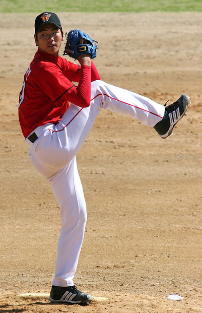 이제 19세의 고졸 신인이지만 마운드 운영 능력은 베테랑 못지 않다. 흔들림 없이 자신이 원하는 구질을 원하는 템포로 구사, 타자들을 압도한다. SK 와이번스의 고졸 루키 김광현이 2번째 시범경기 등판서도 무실점 행진을 벌였다. 전날 경기가 우천으로 취소되는 바람에 22일 LG전에 6회부터 선발 로마노에 이어 등판한 좌완 김광현은 트레이드 마크인 낙차 큰 커브에 신무기인 포크볼까지 선보이며 LG 타선을 3⅓이닝 1피안타 1볼넷 3탈삼진 무실점으로 틀어막았다. 직구 최고구속은 시속 146km였다. 시범경기 총 7⅓이닝 무실점. 김광현은 경기 후 "연습한다는 마음으로 편안하게 등판했다. 변화구 컨트롤이 좋아 만족한다. 불펜에서 변화구를 많이 던지며 연습한 것이 좋았다. 커브로 카운트를 잡고 슬라이더를 유인구로 던졌다. 그리고 포크볼을 결정구로 활용했다. 초구 변화구로 스트라이크를 던지는 것이 즐겁다"고 밝혔다. 김광현은 어린 투수답지 않게 타자들과의 '수싸움'을 즐기는 두둑한 배짱도 과시했다. 그는 "오늘은 빠른 템포로 공격적 투구를 했다. 타자들에게 생각할 시간을 주기 않기 위해 빠른 템포로 투구했다"고 말해 타자들의 '노림수'를 피해가는 노련함(?)도 보여줬다. 싱커성으로 떨어지는 포크볼은 스프링캠프에서 김성근 감독의 집중 지도로 장착한 신무기라고. 김 감독은 "포크볼이 바깥쪽으로 조금 더 잘들어가면 삼진을 많이 뽑을 것"이라며 김광현의 빠른 신무기 적응을 칭찬했다. '스스로 스트라이크존을 좁혀놓고 던지고 있다'는 김광현은 "오늘은 스트라이크존이 넓어보였다. 낮아진 마운드, 커진 공, 강화된 스트라이크존 등에 적응에는 문제없다"면서 "포크볼은 5개 중 3개 정도를 원하는 곳으로 던질 수 있다. 올해 결정구로 쓰고 싶다"면서 "아직 볼스피드는 100% 상태가 아니기에 시즌 들어가면 더 빨라질 것으로 생각한다"고 덧붙였다. 베테랑 투수 못지 않은 안정된 경기 운영 능력을 보여준 김광현은 "박경완 선배의 리드가 정말 좋았다. 오늘은 내가 던진 것이 아니라 박경완 선배가 던진 것"이라며 겸손함도 보였다. 계약금 5억 원을 받고 입단한 거물 신인인 김광현이 갈수록 진화되는 구위를 앞세워 올 시즌 강력한 신인왕 후보로 인정받고 있다. sun@osen.co.kr SK 와이번스 제공.