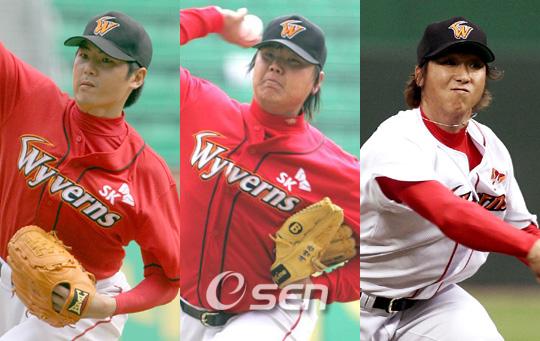 한때는 중책을 떠맡고 있는 주축투수였다. 하지만 이제는 부상의 덫에 걸리면서 맨 끝으로 밀려났다. SK 와이번스의 ‘팔꿈치 3인방’이 돌아왔다. 팀과 동떨어져서 해외에서 훈련중이던 베테랑 우완 투수 김원형(35), 우완 투수 채병룡(25), 우완 사이드암 투수 신승현(24) 등 3명이 그들이다. 오른 팔꿈치 통증이 있는 이들 3명은 지난 22일 일본 오키나와 훈련을 마치고 귀국, 남은 시범경기에서 실전 테스트를 갖는다. 3명 모두 한때 주축 선발 투수로 맹활약했던 위치였으나 올해는 선발 로테이션의 마지막 자리인 제5 선발을 놓고 경쟁을 펼쳐야 하는 얄궂은 운명이다. 3명이 팀과 동떨어져 사이판과 오키나와에서 재활훈련에 몰두하고 있는 사이 선발 4자리가 채워져 버렸다. 외국인 원투펀치로 기대받고 있는 레이번과 로마노가 안정된 투구로 1, 2선발 자리를 예약했고 대형 신인인 좌완 김광현도 무난하게 선발 한 자리를 꿰찼다. 여기에 사이드암 이영욱이 시범경기서 연일 호투, 김성근 감독으로부터 ‘선발 투수’로 낙점을 받았다. 이제 남은 자리는 제5 선발뿐이다. 일명 ‘팔꿈치 3총사’로 불리는 이들 3명과 군복무를 마치고 돌아온 베테랑 좌완 김영수가 한 자리를 놓고 경쟁을 벌여야 한다. 김영수는 다소 기복있는 투구로 선발보다는 불펜으로 밀려날 공산이 높아지고 있어 결국 ‘팔꿈치 3총사’중에서 한 명이 5선발로 기용될 전망이다. 작년까지는 ‘안전한 선발’로 걱정이 없던 이들 3명이 지금 외치고 싶은 한마디는 아마도 ‘내자리 돌리도’일 것이다. 작년과는 완전히 달라진 SK 선발 마운드의 한 단면이다. 김원형은 2005시즌 14승 등 통산 117승을 기록중이고 채병룡은 묵직한 구위로 통산 31승을 올리고 있다. 신승현은 2005년 12승 등 근년 들어 주가를 올리던 신예 기대주이다. 과연 이들 팔꿈치 부상병 3명 중 누가 제5 선발이 될지 궁금하다. sun@osen.co.kr 김원형-채병룡-신승현.