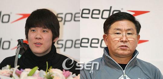 '막판 스퍼트가 빛났다'. 역시 금빛 물살을 가른 것은 '막판 스퍼트'였다. 25일(이하 한국시간) 저녁 호주 멜버른에서 열린 제12회 국제수영연맹(FINA) 세계선수권대회 남자 자유형 400m에서 우승한 박태환(18, 경기고)은 자신의 장기인 막판 스퍼트를 살려 한국 수영 사상 첫 세계 제패라는 금자탑을 이루어냈다. 이날 결선에 5레인으로 나선 박태환은 마지막 턴지점인 350m까지 단 한 번도 선두를 잡지 못했다. 50m를 4위로 통과한 박태환은 계속 3~4위권에 머무르며 반전의 기회를 찾았다. 350m 지점을 3분 18초 24의 기록으로 3위로 통과한 박태환은 오사마 멜로리와 0.77초 이상 뒤처져 우승이 어려운 듯했다. 하지만 박태환은 스퍼트를 시작했고 마지막 결승선을 얼마 두지 않은 지점에서 상대를 추월하며 금빛 물살을 갈랐다. 최종 기록은 3분 44초 30. 2위인 멜로리와 0.82차이로써 마지막 50m 구간에서 거의 1.5초 이상을 단축시킨 놀라운 막판 스퍼트였다. 박태환의 장점이었던 막판 스퍼트가 더욱 빛을 발한 것은 바로 집중적인 훈련 덕분. 박석기 감독의 지도아래 박태환은 지난 1월 29일 괌훈련을 시작으로 웨이트 트레이닝과 기초 기술 훈련을 병행해왔다. 이같은 특훈의 결과 박태환은 지구력과 스피드를 향상시킬 수 있었다. 자신의 장기인 '막판 스퍼트'를 업그레이드 시킨 박태환. 계속된 그의 발전이 내년 베이징 올림픽 전망을 밝게 하고 있다. bbadagun@osen.co.kr 박태환-박석기 코치.