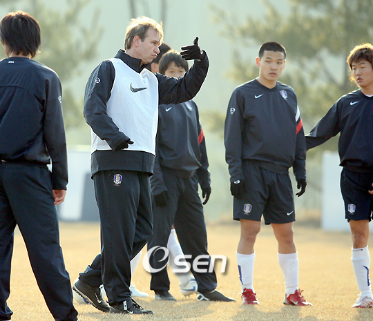 핌 베어벡 감독이 이끄는 한국 올림픽 대표팀이 우즈베키스탄과의 물러설 수 없는 일전을 앞두고 정확한 크로스를 위주로 담금질을 계속했다 올림픽 대표팀은 26일 경기도 파주 대표팀 트레이닝센터(NFC)에서 실시한 훈련을 통해 좌우 풀백의 패스로 시작하는 양쪽 측면 돌파에 이은 정확한 크로스와 슈팅을 중점적으로 연습했다. 그러나 우루과이와의 A매치에서 정확한 크로스가 나오지 않은 데다 전방으로 찔러주는 패스마저 번번이 끊겼던 것을 고려한 듯 베어벡 감독은 빠른 원터치 패스 훈련을 먼저 실시하기도 했다. 이어진 11대11 게임에서는 예멘전에서 선제 결승골을 넣었던 양동현(21, 울산 현대)이 원톱으로 서고 이근호(22, 대구 FC)를 비롯해 아랍에미리트연합(UAE)전에서 나란히 득점을 올렸던 한동원(21, 성남 일화), 이승현(22, 부산)이 원톱을 지원하는 3명의 공격형 미드필더로 포진했다. 특히 한동원은 공격형 미드필더와 함께 때에 따라서는 양동현의 뒤를 받치는 처진 스트라이커로도 활용될 전망이다. 또 포백에는 최철순(20, 전북 현대), 김진규(22), 강민수(21, 이상 전남), 김창수(22, 대전) 등이 서고 중원에는 백지훈(22, 수원 삼성)과 오장은(22, 대구 FC)이 위치해 지난 UAE전 선발멤버들이 그대로 조끼를 입은 주전팀에 포함됐다. 훈련이 끝난 뒤 선수 인터뷰에 나선 김진규와 이근호는 "예멘전에서는 그다지 좋지 않았지만 UAE전 등을 치르면서 점점 좋아지고 있음을 느낀다"며 "똑같이 2연승을 달리고 있는 우즈베키스탄과의 경기도 승리로 이끌 수 있을 것"이라고 자신감을 보였다. 한편 올림픽 대표팀은 경기 하루 전인 27일 오전 10시 30분부터 경기 장소인 안산 와~ 스타디움에서 최종 훈련을 가질 계획이다. ■ 우즈벡전 예상 선발명단 ▲ GK = 정성룡 ▲ DF = 최철순 김진규 강민수 김창수 ▲ MF = 이근호 백지훈 한동원 오장은 이승현 ▲ FW = 양동현 tankpark@osen.co.kr