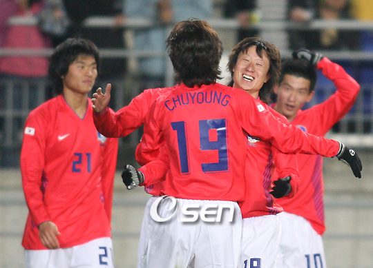 '이근호-양동현-이승현 스리톱 가동'. 핌 베어벡 감독의 선택은 스리톱이었다. 베어벡 감독은 28일 안산 와~스타디움에서 열리는 우즈베키스탄과의 2008 베이징 올림픽 2차예선 경기에서 양동현(21, 울산)과 이근호(22, 대구), 이승현(22, 부산)을 선발 스리톱으로 내세웠다. 세 명의 공격진 아래에는 한동원(21, 성남)이 공격형 미드필더로 배치되어 공격을 조율하고 백지훈(22, 수원)과 오장은(22, 울산)이 배치되었다. 포백은 예전과 같이 김창수(22, 대전), 강민수(21, 전남), 김진규(22, 전남), 최철순(20, 전북)이 나섰다. 골키퍼는 정성룡(22, 포항)이 선발로 나섰다. - 한국 선발 선수 명단 - GK : 정성룡 DF : 김창수, 강민수, 김진규, 최철순 MF : 오장은, 백지훈, 한동원 FW : 이근호, 양동현, 이승현 bbadagun@osen.co.kr