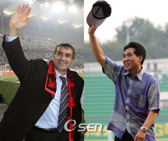 LG 트윈스가 축구와 농구단의 응원 속에 올 시즌을 힘차게 출발한다. LG 트윈스는 오는 4월 2일 2007시즌 우승을 염원하는 기원제와 함께 출정식을 갖는다. 선수단의 2007시즌 무사안녕과 우승을 염원하는 '우승기원제'는 오전 9시 30분 잔디와 불펜 등 시설을 새롭게 단장한 잠실야구장 그라운드에서 김재박 감독을 비롯한 코칭스태프와 선수 대표 및 임직원이 참석해 우봉 백낙신 집례관의 진행으로 열린다. 또한 오후 6시 30분 코엑스 인터콘티넨탈 호텔 하모니 볼룸에서는 4월 6일 개막되는 페넌트레이스를 앞두고 선수단 및 임직원 전원이 우승을 위한 새로운 결의를 다지게 될 '2007시즌 출정식'을 갖는다. 출정식에는 구본준 구단주대행을 비롯해 평소 팀을 위해 많은 지원을 아끼지 않고 있는 LG 트윈스 임원 동호회(LG, GS, LS, LIG 임원들로 구성)원 300여 명이 참석하며 선수들은 이들과의 만남을 통해 감사의 마음을 전하고 동호회에서는 선수단을 격려하며 우의를 다지는 자리다. 행사는 구본준(LG상사 대표이사부회장) 구단주대행 축사, 김태오(LG 서브원 사장) 동호회장 인사, 영상물 시청, 기념품 전달, 팝페라 가수 정세훈 씨의 축하 공연이 있을 예정이며 FC 서울의 터키 출신 명장 세뇰 귀네슈 감독과 팀을 정규리그 2위로 플레이오프에 올려 놓은 LG 세이커스 농구단의 신선우 감독을 비롯해 많은 내외빈이 참석 한다. 농구단은 현재도 LG스포츠 소속으로 야구단과 한 식구이고 축구단은 그룹이 분리되면서 갈라졌지만 예전에는 한 집안이었다. sun@osen.co.kr 귀네슈-신선우 감독.