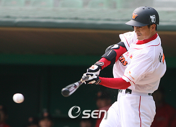 시범경기라도 연패를 용납치 않는 김성근 SK 감독이다. SK 와이번스가 30일 현대와의 문학 홈경기를 2-1로 잡고 전날의 1점차 패배(3-4)를 그대로 되돌려줬다. 이로써 롯데가 두산에 패배(3-5), SK는 다시 시범경기 1위를 재탈환했다. 3시간 14분 '총력전'을 펼친 전날과는 반대로 투수전이었다. SK는 선발 후보인 우완 송은범이 5이닝을 무실점으로 막아냈다. 또 팔꿈치 복귀에서 복귀해 첫 실전 등판을 가진 우완 채병룡은 2이닝 무실점이란 '희망'을 뿌렸다. 이 사이 SK 타선은 1회부터 현대 선발 전준호를 공략했다. SK는 1회말 2사 3루에서 4번타자 박경완의 좌전 적시타로 선취점이자 결승점을 뽑아냈다. 이어 3회에는 김강민의 연속 도루와 김재현의 중전안타가 터지면서 2점째를 올렸다. SK는 8회초 무사 만루 위기에 몰렸으나 조영민에 이어 긴급 투입된 좌완 정우람이 대타 김일경을 유격수 병살타로 유도했다. 유격수-2루수-3루수로 이어지는 '신기한 병살타'에 이어 우익수 박재홍이 우측 펜스 바로 앞까지 달려가 파울 플라이를 잡아내 1실점만으로 넘어갔다. 주루에서도 김성근 감독은 이진영을 잃었음에도 8회말 1사 1,2루에서 더블 스틸을 지시, 성공시키는 등 흔들림없는 허슬 플레이를 요구했다. 교체된 우익수 조동화 역시 9회 이택근의 2루타성 타구를 전력질주 캐치하는 호수비를 선보였다. SK는 9회 원아웃 뒤 '잠수함' 이한진-좌완 가득염을 올려 경기를 끝냈다. SK는 31일부터 4월 1일까지 부산으로 이동, 롯데와 시범경기 최종 2연전을 갖는다. 이 결과에 따라 시범경기 최강팀도 가려지게 됐다. sgoi@osen.co.kr 김재현.
