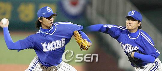 올 시즌 삼성 라이온즈 선발 로테이션의 윤곽이 드러났다. 삼성은 '용병 원투 펀치' 제이미 브라운-크리스 윌슨을 내세워 팔꿈치 수술로 올 시즌 전력에서 이탈한 배영수와 LG로 이적한 팀 하리칼라의 공백을 메울 예정. 제3선발은 좌완 전병호가 유력하다. 나머지 두 자리를 놓고 고심해온 삼성은 임창용, 임동규, 안지만 등 세 명을 선발 후보로 놓고 저울질했다. 현재로서 임창용과 임동규가 두 자리를 차지할 공산이 크다. 지난 2005년 가을 오른쪽 팔꿈치 인대 접합 수술 후 지난 시즌 종반까지 재활에 몰두하며 재기를 노리는 임창용은 해외 전훈기간 열린 연습경기에 3차례 등판, 6⅔이닝 8피안타 4볼넷 6실점으로 부진한 모습을 보였다. 그러나 시범경기에서 세 차례 마운드에 올라 11⅔이닝 7피안타 5볼넷 5탈삼진 2실점하며 방어율 1.59를 마크, '재기했다'는 평가를 받을 만한 좋은 성적을 남겼다. 임창용은 지난달 18일 한화전에 선발 등판, 직구 최고 구속 149km을 찍으며 4이닝 1피안타 1탈삼진 무실점으로 호투했다. 두 번째 투수로 나선 22일 KIA전서는 2⅓이닝 3피안타 3볼넷 1실점으로 흔들리는 모습을 보였지만 선발로 나선 27일 현대전서 5이닝 3피안타 4탈삼진 1실점으로 안정된 모습을 되찾았다. 군 문제로 인해 이번 해외 전훈에 참가하지 못하고 홀로 경산 볼파크에서 구슬땀을 흘리며 시즌을 준비한 임동규는 20일 롯데전에 두 번째 투수로 마운드에 올라 3이닝 1피안타 2탈삼진 무실점으로 호투하며 건재를 과시했다. 이어 25일 SK전에서는 시범경기 첫 승을 따내는 등 2차례 등판서 5이닝 4피안타 2볼넷 2탈삼진 3실점으로 방어율 3.60을 기록했다. 선동렬 삼성 감독이 해외 전훈 후 가장 기대되는 투수로 꼽은 안지만은 불안한 모습을 보였다. 연습경기에서 9이닝 1피안타 무실점으로 방어율 0.00이라는 눈부신 성적을 남겼지만 시범경기에 4번 등판, 9⅔이닝 14피안타 3볼넷 8탈삼진 11실점에 방어율 10.24로 선 감독의 기대를 저버렸다. 특히 29일 LG전에서는 1이닝 5피안타 1볼넷 1탈삼진 5실점으로 난타당했다. 올 시즌 선발 로테이션 구성에 대해 선 감독은 "시범경기가 끝난 후 최종 결정하겠다"고 밝힌 바 있다. 성적을 놓고 결정한다면 현재로선 임창용과 임동규가 남은 선발 자리를 차지할 것으로 보인다. what@osen.co.kr 임창용-임동규.