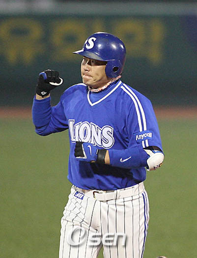 삼성 라이온즈가 두산 베어스를 꺾고 개막 3연전을 2승 1패로 마쳤다. 삼성은 8일 대구구장에서 열린 두산전에서 진갑용의 2점 홈런 등에 힘입어 7-4로 꺾었다. 삼성 선발 임창용(31)은 시즌 첫 등판에서 승리를 거두며 최연소 개인통산 100승-150세이브를 달성했다. 임창용은 5이닝 4피안타 5탈삼진 3실점으로 승리를 거두며 대기록을 세웠다. 종전 기록은 지난 1998년 4월 22일 잠실 쌍방울전에서 LG 김용수(현 LG 2군 투수코치)가 당시 나이 37세 11개월 20일 만에 세웠다. 개인 통산 100승 달성은 김원형(2005년 4월 28일 광주 KIA전)에 이어 17번째 기록이다. 삼성은 1회 신명철의 내야안타로 1루에 출루한 뒤 2루 도루에 성공했다. 후속 타자 조동찬이 유격수 앞 땅볼로 물러났지만 3번 양준혁의 볼넷과 4번 심정수의 사구로 만든 1사 만루 찬스에서 박진만의 2타점 적시타로 2점을 먼저 뽑았다. 3회에도 삼성은 톱타자 신명철이 볼넷과 조동찬의 사구로 만든 무사 1,2루에서 양준혁의 희생번트로 1사 2,3루의 득점 기회를 잡고 4번 심정수의 좌익수 희생 플라이로 1점을 추가했다. 두산의 기세도 만만치 않았다. 5회 1사 1루에서 윤재국의 우중간 2점 홈런과 김현수의 1타점 적시타로 동점에 성공했다. 임창용이 기록 달성 무산 위기에 처하자 삼성 타자들은 본격적인 지원 사격에 나섰다. 5회 선두 타자 박정환-신명철의 연속 안타와 조동찬의 볼넷으로 만든 무사 만루에서 3번 양준혁이 우익수 희생 플라이를 날려 다시 리드를 잡았다. 이어 6회 2사 1루에서 8번 진갑용이 두산의 두 번째 투수 김덕윤을 상대로 비거리 110m짜리 좌월 투런 홈런을 터트리며 대기록을 축하했다. 두산은 8회 홍성흔의 우익수 희생플라이로 한 점을 뽑았지만 승부를 뒤집기엔 역부족이었다. 삼성은 8회 조영훈의 적시타로 한 점을 더 뽑으며 두산의 추격 의지를 완전히 꺾었다. 임창용에 이어 6회 등판한 권혁(2⅔이닝 2피안타 1볼넷 2탈삼진 1실점)-권오준(⅓이닝 무안타 무실점)-오승환(1이닝 1탈삼진 무실점)은 효과적인 투구로 마운드를 지켰다. 두산 선발 금민철은 첫 선발 데뷔전에서 4⅓이닝 5피안타 3볼넷 1탈삼진 4실점하며 패전 투수가 됐다. 윤재국은 5회 2점 홈런을 포함, 4타수 2안타 2타점으로 분전했지만 팀 패배로 빛을 보지 못했다. 김경문 두산 감독은 "3-3으로 따라간 뒤 바로 실점해 그 부분이 아쉽다. 선수들이 열심히 하는 모습을 보이고 있어 홈 6연전에서 좋은 결과를 기대할 수 있을 것 같다"고 말했다. 선동렬 삼성 감독은 "임창용이 초구에 스트라이크를 많이 던져야 하는데 볼이 많아 볼넷이 많이 나오고 안 좋은 결과가 나왔다. 야수들의 작은 실책이 4실점으로 연결됐는데 그 부분은 고쳐나가야 할 것 같다. 타자들은 조금씩 좋아지고 있다. 개막 3연전 2승 1패에 만족한다"고 이날 경기를 평가했다. what@osen.co.kr 진갑용.