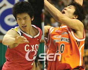 "신인왕의 참모습을 보여주마", "상승세 살려 팀을 최초로 챔프전에 올리겠다". 올 시즌 신인으로서 팀의 4강 플레이오프 진출에 기여한 이현민(창원 LG)과 조성민(부산 KTF)이 본격적으로 맞붙었다. 정규리그 3위팀 KTF가 지난 8일 창원실내체육관에서 열린 2006~2007 현대모비스 프로농구 4강 플레이오프 1차전을 승리로 이끈 가운데 오는 10일 2차전은 두 신인의 자존심 대결이 볼 만할 전망이다. LG에는 베테랑 현주엽 조상현에 전주 KCC 시절 신선우 감독과 함께 포스트시즌을 치렀던 찰스 민렌드가 있고 KTF는 원주 동부를 챔피언으로 이끌었던 신기성과 애런 맥기, 필립 리치 '용병 듀오'의 활약이 눈부시지만 두 신인을 무시할 수 없다. LG를 정규리그 2위로 이끈 이현민은 전체 78표 가운데 70표를 얻어내며 평생 단 한 번 밖에 기회가 없는 신인상을 받았지만 조성민은 철저하게 외면됐다. 정규리그에서 경기당 평균 득점은 3.6득점에 그쳤고 리바운드와 어시스트 역시 1.3개씩에 그쳤다. 그러나 조성민은 포스트시즌부터 괄목상대할 만한 플레이를 펼쳤다. 지난 1일 안양 KT&G와의 6강 플레이오프 1차전에서 13득점과 4개의 리바운드를 잡아낸 데 이어 2차전에서도 3점슛 2개를 포함해 10득점과 3리바운드, 5어시스트를 기록하며 팀을 4강 플레이오프로 진출시켰다. 추일승 감독이 조성민을 2연승의 수훈선수로 내세울 만한 활약이었다. 둘이 본격적으로 맞붙은 창원 1차전은 기록상으로는 막상막하였다. 이현민이 3점슛 2개를 포함해 10점을 넣었고 2개의 스틸과 2개의 어시스트를 기록했다. 또 6강 플레이오프 수훈 선수로 선정된 조성민은 이현민 보다 적은 8득점이었지만 3개의 리바운드와 2개의 어시스트를 해냈다. 하지만 굳이 우열을 가린다면 조성민의 약간 우세다. 조성민은 고비마다 슛을 터뜨리는가 하면 대담한 플레이로 추일승 감독으로부터 칭찬을 받았고 신기성으로부터도 "신인이라 투박하지만 당차게 플레이하고 있다"는 말을 들었다. 그러나 이현민은 박지현 등과 함께 신기성에 대한 철저한 압박수비 임무를 충실히 수행했지만 노련한 신기성을 당해내지는 못했다. 이현민으로서는 2차전에서 신인왕의 참모습을 보여줄 필요가 있고 조성민으로서는 포스트시즌 상승세를 이어나가야 한다. LG가 2차전마저 놓칠 경우 사실상 챔피언결정전 진출이 힘들어지고 1승 1패가 되면 접전의 양상이 돼 플레이오프 승부를 점치기 어려워진다. 양팀의 노장과 용병의 전력이 비슷하다면 결국 당차고 무서울 것이 없는 신인에 의해 승패가 결정될 수 있기에 2차전에서 이들의 역할은 더없이 중요하다. tankpark@osen.co.kr 이현민-조성민.