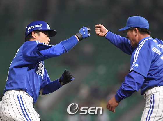 3루코치의 어려움. 노찬엽 LG 코치는 3루코치직을 두고 "꽃보직"이라고 말한 적이 있다. "감독의 사인을 선수들에게 전달하기에 야구를 종합적으로 이해할 수 있고, 그 판단에 팀의 승패가 왔다갔다 하는 자리"이기 때문이다. 그러나 노 코치는 정신적 중압감도 언뜻 내비쳤다. 핵심적 기능인 만큼 실수가 치명적일 수 있어서다. SK-삼성의 시즌 첫 대결이 열린 지난 10일 문학구장. 양 팀 3루코치들은 한 번씩 '용궁'에 다녀왔다. 먼저 유중일 삼성 3루코치는 2회초 원아웃 1,2루 때 김창희의 중전안타가 터진 직후, 2루주자 진갑용을 3루에 멈추게 했다. 그러나 타이밍상, 진갑용이 기세를 몰아 홈으로 질주했으면 살 수도 있었다. 더군다나 (스톱 사인과 거의 동시의 일이지만) SK 중견수 김강민은 타구를 더듬었다. 이후 박정환의 유격수 병살타가 나오는 바람에 삼성은 선취점 기회를 날렸다. SK의 경우 중후반에 횡사가 나와 더 뼈아팠다. 5-5로 맞서던 6회 투아웃 2루에서 대타 조동화는 좌전안타를 터뜨렸다. 여기서 이광길 SK 3루코치는 주자 박정권을 홈으로 돌렸으나 삼성 좌익수 심정수의 호송구에 걸려 아웃됐다. 간발의 차로 역전 기회를 상실한 SK는 8회 진갑용에게 결승 솔로홈런을 맞고 패배했다. 드러난 결과를 떠나 3루코치가 얼마나 '살 떨리는' 보직인지를 단적으로 드러낸 한 판이었다. 왜 요미우리가 감독 출신인 이하라를 3루코치로 초빙했는지도 짐작할 만한 대목이었다. 삼성과 SK가 공격적 주루 플레이를 천명한 이상, 두 코치의 역량이 더욱 절실히 요구되는 시점이다. sgoi@osen.co.kr 지난 10일 인천 경기서 유중일 삼성 3루코치가 홈런을 친 진갑용과 주먹을 맞부딪치고 있다.