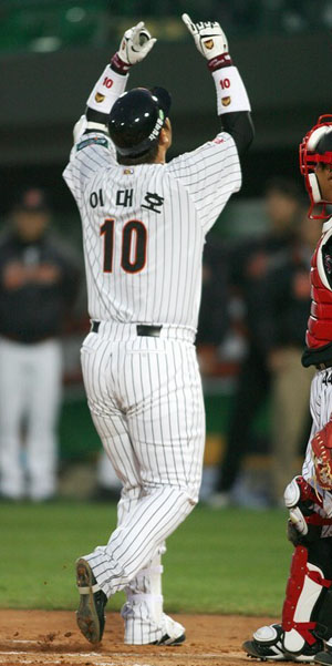 "호세의 빠른 복귀를 기원하는 뜻에서 따라 했습니다". 11일 롯데-LG전을 앞두고 사직구장 롯데 덕아웃에서 이상구 롯데 단장과 강병철 롯데 감독, 이종운 경남고 감독이 이야기를 나누고 있었다. 강병철 감독이 덕아웃 한 켠에 앉아 있던 경남고 출신 이대호에게 "너희 모교 후배들에게 밥 좀 사줘야 안 되겠냐. 그래야 후배들이 더 잘하지"라고 말을 건넸다. 독실한 불교신자인 이대호는 "후배들이 잘할 수 있도록 마음 속으로 기원합니다. 부처님께서 하늘에서 지켜봐주실 겁니다"라며 재치있게 답했다. 이에 이상구 단장이 "대호야, 너 불교 믿지? 그런데 왜 어제 경기에서 호세 홈런 세리머니를 따라 했어? 그건 불교와 맞지 않잖아"라고 묻자 이대호는 "단장님, 그건 호세의 빠른 복귀를 기원하는 뜻에서 따라한 겁니다"라고 말했다. 지난 2월 일본 전훈지서 왼쪽 아킬레스건 부상을 당한 호세는 현재 2군에서 재활훈련을 받고 있다. 지난 시즌 호세와 함께 중심 타선을 이루며 맹활약을 펼쳤던 이대호도 호세가 그리운 모양이다. what@osen.co.kr 지난 10일 경기 2회 솔로홈런을 날리고 들어와 호세의 세리머니를 흉내내는 이대호=롯데 자이언츠 제공.