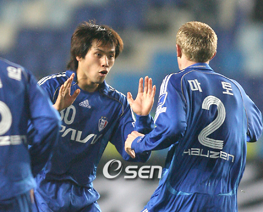 수원 삼성이 종료 직전 마토의 천금같은 동점골로 부산과 1-1로 비겼다. 수원은 11일 수원 월드컵 경기장에서 벌어진 삼성 하우젠 2007 B조 4라운드 홈경기에서 0-1로 뒤지던 후반 44분 마토의 동점골로 1-1 무승부를 기록했다. 이로써 수원은 1승 2무 1패, 승점 4를 기록하며 4위를 계속 유지했고 다 이긴 경기를 놓친 부산은 1승 3무, 승점 6으로 이날 경남 FC를 꺾은 광주 상무에 2위 자리를 내주고 3위로 내려앉았다. 수원은 안정환-에두 투톱 조합과 이현진, 이관우, 배기종 등 공격 성향이 강한 미드필더를 대거 선발로 기용했지만 이렇다할 기회를 잡지 못했고 부산 역시 루시아노와 이정효, 이승현 등을 내세웠지만 전반 슈팅 숫자가 1개에 불과했다. 부산은 전반 중반 루시아노를 원톱으로 놓고 양 날개 돌파를 통한 공격을 펼쳐봤지만 이렇다할 기회를 잡지 못했다. 후반 15분 사이에 골키퍼 서동명을 비롯해 이승현과 이정효를 불러들이고 정유석과 한정화, 박성호를 투입시키며 승부수를 건 부산이 먼저 선제골을 뽑아냈다. 후반 22분 박성호가 골키퍼 이운재를 제치고 쏜 슈팅이 마토에 의해 걷어내어졌지만 곧이은 한정화의 코너킥에 이은 루시아노의 헤딩슛이 골 포스트 상단을 때리고 골망을 흔들었다. 후반에 이현진 대신 김대의를 내보내 공격을 강화했다가 일격은 맞은 수원은 배기종 대신 박성배, 이관우 대신 홍순학을 투입시켰지만 기다렸던 골이 나오지 않아 끝내 패배를 추가하는 듯 했지만 후반 44분 수비수가 모두 부산 진영으로 올라오는 전술로 겨우 중앙 수비수 마토의 동점골을 만들어냈다. 송종국이 페널티 지역 오른쪽에서 올린 크로스를 어느새 부산의 골 지역으로 침투한 마토가 헤딩으로 동점골을 만들어낸 것. 추가 시간이 2분이 주어진 가운데 수원은 상승세를 바탕으로 내친김에 역전 결승골을 뽑기 위해 총 공세를 펼쳤지만 승점 1을 추가하는 데 만족해야 했다. ■ 삼성 하우젠컵 2007 4R 전적 (11일) ◆ 수원 수원 1 (0-0 1-1) 1 부산 ▲ 득점 = 마토 2호(후44분,도움 송종국·수원)루시아노 1호(후22분,도움 한정화·부산) tankpark@osen.co.kr