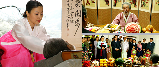 임권택 감독의 100번째 영화 '천년학'에서는 천년을 산 고송의 향이 배어난다. 필름 곳 곳에 장인들의 땀내와 입김이 서려있는 까닭이다. 영화계의 장인 임 감독과 정일성 촬영감독, 요즘 보기 드물게 평생을 영화판 동지로 한솥밭을 먹어온 바늘과 실이다. 당연히 '천년학' 촬영도 함께 했다. 옛 정취가 물씬 나는 시골 고택 위로 벚꽃이 눈발마냥 날리는 '천년학'의 명장면 광양 별채씬도 노병 둘이서 힘을 합쳐 만들어낸 작품이다. 한국 영화계의 산 증인이랄수 있는 임감독의 작품이다보니 전통문화의 대가들이 대거 영화 스탭으로 자원 참여했다. 영화 곳곳에 보물들이 숨어있는 배경이다. 극중 소품으로 쓰인 병풍만 봐도 그렇다. 서예계의 거두 하석 박원규가 직접 쓴 것으로 시가 8000만원을 호가한다. 지난 23년 동안 작품 세계에만 몰두해온 그는 "전 세계 관객들을 만나게 될 '천년학'이기에 잠시 스쳐가는 장면이라도 제대로 된 글씨를 보여주고 싶다'며 자신의 소중한 글을 전달했다. 이 병풍은 광양 별채 세트장에 앞으로도 계속 남게될 예정이다. 제작진이 이번 촬영에 물심양면 지원을 아끼지않았던 광양 매화마을 주민들에 대한 감사의 표현으로 기증한 때문. 영화 속 오정해의 단아하고 청초한 한복은 김혜순의 작품이다. 지난해 화제를 모았던 TV 드라마 '황진이'에서 황진이 역 하지원을 감쌌던 화려한 한복 의상들을 만들었던 복식연구가다. 대하사극 '토지'와 '해신'의 극중 각종 의상들도 그의 손끝을 거쳐서 탄생했다. 입과 코로 즐기는 명품도 등장한다. 영화 속 지역 유지인 '백사 노인'의 회갑연 때 스크린을 화려하게 수놓는 잔칫상 역시 보통 음식이 아니다. 궁중요리 전수자 한복녀의 손맛이 들어간 맛깔진 음식들이다. 그 상차림에 들어간 비용만도 1000만원을 웃돌았다는 게 제작진의 설명. 임 정, 두 감독은 그 놀라운 상차림에 감탄을 금치못하고는 상 앞에 앉아 기념 촬영까지 했다. 이밖에도 김동호 조명감독, 이예호 소품기사 등 50년 경력을 넘나드는 베테랑 스탭들이 '천년학' 촬영을 함께 했다. 묵을수록 맛을 더하는 게 우리네 장맛이다. 김치도 몇년을 저장한 묵은지가 전혀 새로운 맛을 내는 것처럼. '천년학'은 그런 영화다. 대가와 장인들의 경륜이 펼쳐진 한국영화의 장이고 묵은지인 셈이다. mcgwire@osen.co.kr