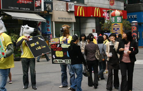 지난 8일 FC 서울과 수원 삼성과의 경기에서 역대 최다관중인 5만 5397명이 입장하면서 K리그도 흥행에 성공할 수 있다는 것을 보여줬다. 이에 정규리그 1위를 달리고 있는 성남 일화도 관중 몰이에 나섰다. 그동안 성적에 비해 관중동원에 부진했던 성남은 15일 포항과의 경기를 앞두고 거리에서 직접 홍보를 하며 관중유치에 나선 것이다. 성남은 구단 직원과 서포터스들이 최근 홈구장 근처인 분당의 서현역과 모란시장 그리고 야탑역 등 유동인구가 많은 장소에 팀 마스코트인 말가면을 쓰고 '잃어버린 관중을 찾습니다', '우리도 5만 관중 해보자'등의 피켓을 들고 관중 유치에 나섰다. 한편 성남은 15일 포항과의 경기에서 온라인 홈페이지를 통해 '포토데이 & 포토콘테스트'의 사진공모전 이벤트를 제공하며 팬들과 가까워지기 위한 노력을 하고 있다. 10bird@osen.co.kr 서현역에서 구단직원과 팬들이 함께 홍보 활동을 펼치는 모습=성남일화 제공.