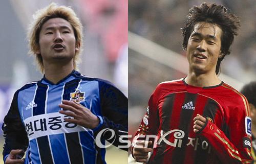 '고려대 선후배' 사이지만 K리그 그라운드에서는 양보없는 대결을 펼치는 이천수(26, 울산 현대)와 박주영(22, FC 서울)이 상암벌에서 맞대결을 펼친다. 바로 오는 15일 서울 상암 월드컵경기장에서 벌어지는 서울과 울산의 정규리그 경기에서다. 공교롭게도 서울과 울산은 최근 상승세가 한 풀 꺾인 모습이다. 삼성 하우젠컵 2007 대회에서 광주 상무에 5-0, 수원 삼성에 4-1 대승을 거뒀던 서울은 정작 정규리그에서는 이들 팀을 상대로 단 한 골도 뽑아내지 못하고 1무 1패에 그쳤다. 이에 따라 세놀 귀네슈 감독의 공격축구도 잠시 주춤하고 있다. 울산 역시 정규리그 3연승 행진이 멈췄다. 지난 7일 성남 일화를 울산 문수 월드컵경기장으로 불러들였지만 장학영에게 1골, 1도움을 허용하고 김두현, 한동원 등에게 득점을 내줘 0-3으로 완패했다. 무엇보다도 서울과 울산이 살아나기 위해서는 박주영과 이천수의 활약이 절대적이다. 박주영은 수원과의 경기에서 해트트릭을 터뜨리긴 했지만 정규리그 경기에서는 1골에 불과하다. 좀처럼 골이 터지지 않자 귀네슈 감독은 11일 대전과의 컵대회 경기에 박주영을 교체 멤버로 돌리기도 했다. 그러나 이청용과 기성용 등 유망주 미드필더들이 경고 누적이거나 부상으로 뛰지 못하는 상태이고 심우연은 올림픽 대표팀에 차출됐기 때문에 박주영이 선발로 출격해 울산의 수비를 뚫어야 하는 입장이다. 여기에 두두와 정조국 등이 가세할 것으로 예상된다. 이에 맞서는 울산도 이천수에게 모든 것을 걸고 있다. 양동현이 올림픽 대표팀에 차출됐기 때문에 정경호, 이종민, 우성용에 이천수가 선발로 나올 것으로 예상된다. 특히 김정남 감독으로부터 서울의 포백 수비를 마음껏 헤집고 다니도록 주문받은 이천수는 '프리킥 스페셜리스트'로서 직접 프리킥을 통해 득점을 노리게 된다. 지난 주말 정규리그 첫 패배를 당한 두 팀의 주공격수 이천수와 박주영의 두발에 팀 승리의 모든 것이 걸린 셈이다. 결국 상암벌 자존심 대결에서 웃어야만 승리도 보장된다. tankpark@osen.co.kr