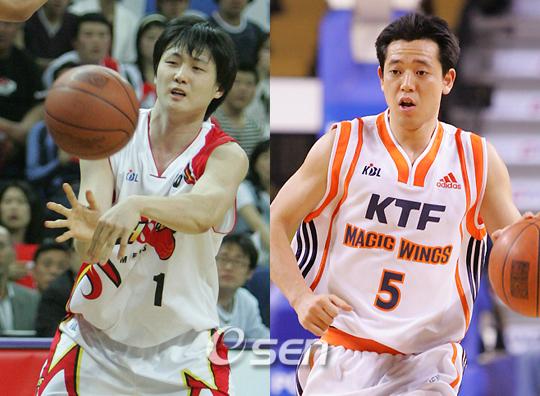 울산 모비스의 김동우와 부산 KTF의 신기성이 KBL 경기기술위원회에서 선정하는 4강 플레이오프 수훈선수에 선정됐다. KBL은 18일 공식 홈페이지(www.kbl.or.kr)를 통해 경기기술위원회 위원 투표 결과 총 투표수 11표 가운데 김동우와 신기성이 각각 10표와 9표를 받아 2006~2007 현대모비스 프로농구 4강 플레이오프 수훈선수로 뽑혔다고 밝혔다. 지난 2004~2005 시즌 이 상이 처음 제정된 이후 처음으로 수훈선수에 선정된 김동우는 대구 오리온스와의 4강 플레이오프 3경기에서 11개의 3점슛을 성공시키며 경기당 평균 16.0득점을 기록하며 팀을 2년 연속 챔피언결정전에 진출시켰다. 또 원주 TG삼보 시절이던 지난 2004~2005 시즌에 이어 두 번째로 수훈선수로 뽑힌 신기성은 창원 LG와의 플레이오프 4경기를 통해 경기당 평균 14.5득점과 3.8어시스트를 기록했고 3점슛은 19개 가운데 9개를 성공시키기도 했다. tankpark@osen.co.kr 김동우-신기성.