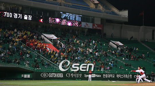 2007 프로야구 SK 와이번스와 KIA 타이거즈의 경기가 19일 인천 문학구장에서 벌어졌다. 이날 경기는 부상에서 복귀한 KIA 이대진과 좀체로 첫 승을 올리지 못하고 있는 SK 기대주 김광현이 선발 맞대결을 벌였다. 9회초 SK 조웅천이 선발 김광현에 이어 마운드에 올라 역대 최초 700게임 등판 기록을 세웠다./인천=손용호 기자spjj@osen.co.kr