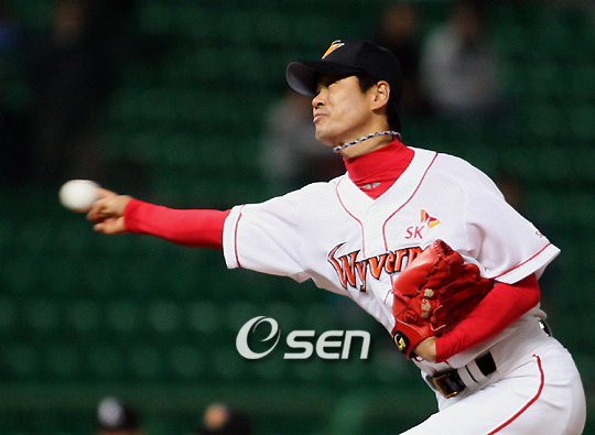 2007 프로야구 SK 와이번스와 KIA 타이거즈의 경기가 19일 인천 문학구장에서 벌어졌다. 이날 경기는 부상에서 복귀한 KIA 이대진과 좀체로 첫 승을 올리지 못하고 있는 SK 기대주 김광현이 선발 맞대결을 벌였다. 9회초 SK 조웅천이 선발 김광현에 이어 마운드에 올라 역대 최초로 700게임 등판 기록을 세웠다./인천=손용호 기자spjj@osen.co.kr