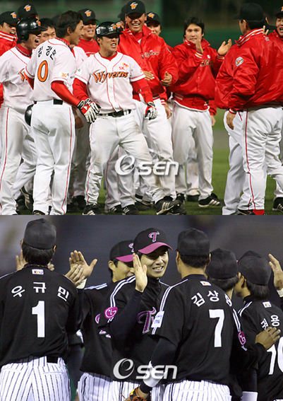 지난해 4강이 몰락했다. 김인식 한화 감독이 "그래도 30경기는 해봐야 안다"고 말하고 있지만 적어도 개막 초반에는 딱 들어맞는 말이다. 지난해 4강팀 가운데 유일하게 삼성만이 4위에 턱걸이했다. 1위 SK, 2위 LG, 3위 롯데는 지난해 4강에 들지 못한 팀들이다. SK는 연장 단골팀이 될 정도로 끈끈한 승부를 펼치며 돌풍을 일으키고 있다. 지난해 최하위 LG는 김재박 야구가 먹혀들면서 연전연승, 또다른 돌풍의 축을 형성하고 있다. 롯데는 지난해와 다른 마운드와 집중력을 보여주며 당당히 4강에 명함을 내밀었다. 디펜딩 챔피언 삼성만이 불펜의 위기 속에서 어렵사리 4강권에 붙어있다. 지난해 한국시리즈 준우승팀 한화는 투타 엇박자와 극심한 집중력 부족으로 5연패, 하위권으로 밀려났다. 지난해 3위 현대는 매각 불발 후유증으로 개막부터 휘청거리더니 꾸준히 최하위권에서 맴돌고 있다. 4위 KIA 역시 결정적인 찬스를 살리지 못하는 득점타 빈곤으로, 지난해 5위 두산은 불펜 불안으로 인해 상위권으로 도약하지 못한 채 동네북이 되고 있다. SK-LG-롯데의 현재 강세가 계속 이어질지는 장담 못한다. 아직 초반에 불과한 데다 잠시 흐트러진 삼성 한화 KIA 두산 등이 전열을 재정비하고 본격적인 추격전을 벌인다면 다시 판도과 뒤집힐 가능성이 있다. 삼성은 예비역 윤성환, 한화는 소방수 구대성, KIA는 에이스 김진우 등이 가세하면 분명히 힘이 달라진다. 그러나 지난 시즌과는 달라진 새로운 4강 구도는 프로야구의 재미있는 요소임에는 분명하다. sunny@osen.co.kr 7연승 중인 SK(위)와 6연승 중인 LG 선수단이 승리를 자축하는 모습.