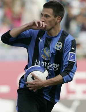 11경기 8골. 경기당 0.72골. 올 시즌 통합 득점 랭킹 1위를 달리고 있는 데얀(인천 유나이티드)이 아시아 챔피언인 전북 현대를 상대로 득점을 노리고 있다. 올 시즌 인천에 입단해 K리그에 첫 발을 디딘 데얀은 오는 21일 인천 문학 월드컵 경기장에서 열릴 전북과의 삼성 하우젠 K리그 7라운드 경기에 출전하다. 187cm, 81kg의 탄탄한 체격을 자랑하는 데얀은 슈팅력과 헤딩력을 두루 갖춘 전천후 스트라이커. 또 다른 장신 스트라이커인 라돈치치와 더불어 트윈 타워를 구성한 데얀은 팀의 시즌 3연승을 이끈다는 각오다. 또한 2선에서 공격을 조율하는 김상록 역시 지난 포항전에서 1골 1도움을 기록하는 등 상승세를 타고 있다. 따라서 인천은 김상록, 데얀, 라돈치치 트리오를 앞세워 홈에서 승리를 낚으려 하고 있다. 반면 이에 맞서는 전북은 최근 시즌 2연패를 당하며 주춤한 상태다. 특히 3경기에서 단 한 골도 넣지 못해 골이 절실한 상황이다. 전북은 염기훈, 스테보, 제칼로를 앞세워 인천 골문을 노리겠지만 김형범의 부상이 너무나도 아쉽다. 이에 정종관, 권집, 이현승 등을 앞세워 2선 공격을 노릴 것으로 보인다. bbadagun@osen.co.kr 인천 유나이티드 제공.