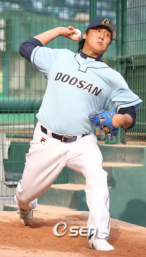 두산의 해외파 복귀투수 이승학(28)이 첫 실전 피칭을 했다. 그러나 비 때문에 볼 3개만 던지는 맛보기 피칭에 불과했다. 이승학은 20일 이천 베어스필드에서 열린 상무와의 2군 경기에 모습을 드러냈다. 3-2로 앞선 6회 2사후 주자없는 상황에서 마운드에 올라 박귀남을 상대로 볼 3개를 던져 가볍게 투수 땅볼로 요리했다. 최고 구속은 141km를 마크했다. 그러나 빗줄기가 거세지는 바람에 강우 콜드게임이 선언돼 더 이상 마운드에 오르지 못했고 이승학은 행운의 세이브를 챙겼다. 이승학은 오는 22일 상무전에 다시 등판할 예정이다. 이승학은 두산의 해외파 특별지명을 받아 이달초 계약금 2억원 연봉 1억원을 받고 입단했다. sunny@osen.co.kr