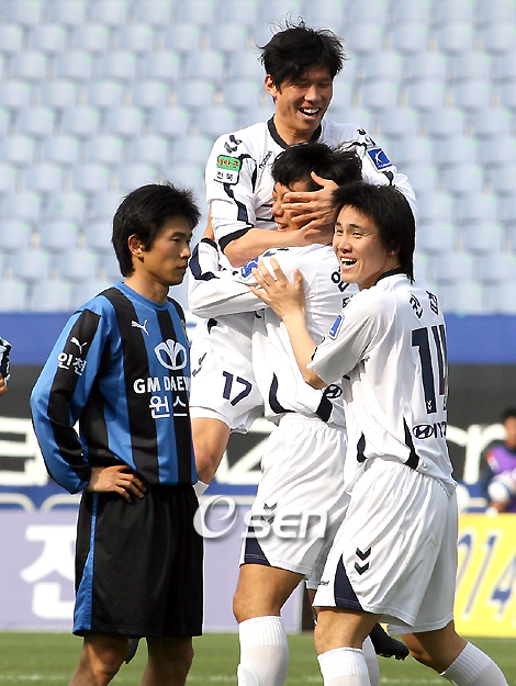 성남 일화가 김두현의 프리킥 선제 결승골로 올 시즌 정규리그 무패행진을 이어가며 단독 선두를 굳게 지켰다. 성남은 21일 창원종합운동장에서 열린 삼성 하우젠 K리그 2007 7라운드 원정경기에서 전반 40분 김두현의 프리킥 선제 결승골과 후반 7분 모따의 추가골로 최근 부산과 수원 삼성을 연파하며 상승세를 타던 경남 FC를 2-0으로 완파했다. 이로써 성남은 5승 2무로 정규리그에서 유일하게 무패행진을 계속했고 승점 17을 기록하며 단독 선두를 굳게 지켰고 경남은 9위로 한계단 내려갔다. 성남은 경기 초반 경남의 상승세와 패기에 눌리는듯 했지만 노련미를 발휘하며 경기를 지배해나갔고 전반 40분 김대건의 파울로 얻은 기회를 김두현이 오른발 프리킥 골로 연결시키며 전반을 1-0으로 앞서갔다. 성남은 후반 7분 남기일의 어시스트레 이은 모따의 추가골로 2-0으로 앞서간 뒤 김동현의 경고 누적으로 퇴장당하며 수적 열세에 놓였지만 수비에 집중하며 승리를 지켰다. 한편 차범근 감독과 허정무 감독의 대결로 관심이 모아졌던 수원과 전남의 대결은 득점없이 끝났다. 수원과 전남은 광양전용구장에서 열린 경기에서 서로 치고 받는 활발한 공격을 펼치며 손에 땀을 쥐는 접전을 펼쳤지만 상대 골키퍼의 선방과 크로스바를 맞히는 불운 속에 끝내 득점을 뽑아내지 못했다. 수원은 이날 무승부로 승점 1을 추가, 승점 12를 기록하며 단독 2위로 올라섰지만 선두 성남과의 승점차가 5로 벌어졌고 전남은 올시즌 3번째 무실점 무승부를 기록하는 골 가뭄에 시달렸다. 특히 수원은 지난 시즌 대한축구협회(FA)컵을 포함해 전남을 상대로 5경기 연속 승리를 따내지 못하는 악연을 이어갔다. 또 전북 현대는 원정경기에서 염기훈의 2골 맹활약으로 인천 유나이티드 FC를 3-1로 완파하고 지난 2005년 9월 11일 이후 인천전 5경기 연속 무승의 고리를 끊는 데 성공, 6위로 도약했다. 전북은 후반 2분 염기훈의 아크 서클 정면 부근에서 쏜 기습적인 왼발 중거리 슈팅으로 1-0으로 앞서간 뒤 후반 26분 제칼로의 추가골로 2-0으로 달아났지만 후반 37분 김상록의 프리킥에 이은 장경진의 헤딩골로 실점, 쫓기기 시작했다. 그러나 후반 42분 염기훈이 정종관의 패스를 받아 페널티킥 스팟 부근에서 오른발 슈팅, 승리에 쐐기를 박았다. 이밖에 제주 유나이티드 FC와 광주 상무는 서로 1골씩을 주고받은 끝에 승점 1을 나눠가졌다. 그러나 제주의 정해성 감독은 전반 30분 주심이 페널티킥을 불지 않는다며 항의하다가 퇴장 명령을 받기도 했다. ■ 삼성 하우젠 K리그 2007 7라운드 (21일) ◆ 인천 문학 (관중 11,628) 인천 1 (0-0 1-3) 3 전북 ▲ 득점 = 장경진 1호(후37분,도움 김상록·인천) 염기훈 2-3호(후2분-후42분,도움 정종관) 제칼로 3호(후26분,도움 이현승·이상 전북) ◆ 창원 (관중 3,271) 경남 0 (0-1 0-1) 2 성남 ▲ 득점 = 김두현 2호(전40분) 모따 3호(후7분,도움 남기일·이상 성남) ◆ 광양 (관중 7,757) 전남 0 (0-0 0-0) 0 수원 ◆ 제주 서귀포 (관중 2,169) 제주 1 (0-1 1-0) 1 광주 ▲ 득점 = 심영성 1호(후15분,도움 김재성·제주) 남궁도 2호(전21분,도움 이길훈·광주) ■ 중간 순위 (21일 현재) ① 성남 5승 2무 (승점 17) 득 15, 실 5 / +10 ② 수원 3승 3무 1패 (승점 12) 득 7, 실 6 / +1 ③ 포항 3승 2무 1패 (승점 11) 득 8, 실 5 / +3 ④ 서울 3승 2무 1패 (승점 11) 득 4, 실 1 / +3 ⑤ 울산 3승 2무 1패 (승점 11) 득 7, 실 6 / +1 ⑥ 전북 3승 1무 3패 (승점 10) 득 10, 실 9 / +1 ⑦ 인천 3승 1무 3패 (승점 10) 득 9, 실 9 / 0 ⑧ 전남 1승 5무 1패 (승점 8) 득 4, 실 4 / 0 ⑨ 경남 2승 2무 3패 (승점 8) 득 9, 실 10 / -1 ⑩ 제주 2승 1무 4패 (승점 7) 득 5, 실 7 / -2 ⑪ 부산 2승 4패 (승점 6) 득 4, 실 8 / -4 ⑫ 대전 1승 2무 3패 (승점 5) 득 7, 실 9 / -2 ⑬ 대구 1승 2무 3패 (승점 5) 득 6, 실 10 / -4 ⑭ 광주 3무 4패 (승점 3) 득 4, 실 10 / -6 tankpark@osen.co.kr / bbadagun@osen.co.kr 문학 월드컵경기장서 벌어진 인천 유나이티드와 전북 현대의 경기 후반 3분경 전북 염기훈이 중거리슛으로 선제골을 넣자 이정호가 염기훈에게 올라타며 권집과 함께 기쁨을 나누고 있다. /인천=손용호 기자spjj@osen.co.kr