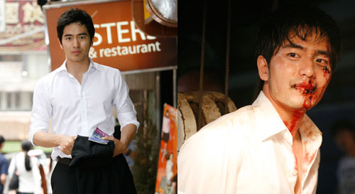 MBC 주말특별기획 드라마 '에어시티'를 통해 새롭게 도약할 신인연기자 이진욱이 "더이상 꽃미남이 아니다"라고 연기변신에 대한 의욕을 드러냈다. 현재 홍콩 현지 로케 촬영 중인 ‘에어시티’에서 공항 상황관리 팀장인 강하준 역을 맡고 있는 이진욱은 연일 이어지는 액션신을 소화하며 기존의 부드러운 이미지와는 다른 새로운 모습을 선보이고 있다. 4월 15일부터 시작된 드라마 ‘에어시티’의 홍콩 촬영은 시내 총격전을 비롯해 선상 추격신, 대규모 특공대 출동 장면 등 대형 액션 장면의 촬영이 진행되고 있다. 특히 이진욱은 매번 촬영 때 마다 범죄조직과의 격투신이 있어 항상 얼굴에 멍과 상처 분장을 하고 나타날 수 밖에 없다. 21일 홍콩의 한 2층 창고에서 진행된 촬영에서 이진욱은 범죄조직에 의해 끌려가 싸움을 벌이다 결국에는 쇠줄로 공중에 매달리게 되는 장면을 연기했다. 이 촬영분에서 장시간 동안 와이어에 매달린 상태에서 움직이지도 않고 버텨야 하는 육체적 고통을 이겨내야 했다. 또 격투신 도중 상대 배우와의 사인이 어긋나 실제로 각목으로 팔목을 맞는 작은 사고가 발생하기도 했다. 이 사고로 팔목이 심하게 부어 올랐지만 아픈 내색 없이 격투신을 소화했으며 선배연기자 이정재가 꼼꼼히 액션 동작과 표정 등을 지도해 주는 등 격려를 아끼지 않았다. 홍콩에 도착하자 마자 촬영장을 찾은 최지우(한도경)는 심하게 얻어맞은 얼굴로 분장한 이진욱의 모습에 깜짝 놀라며 “진욱씨, 어떻게 된거야? 꽃미남 배우 진욱씨는 어디가고 이런 얼굴로 바뀐거에요?”라고 첫인사를 건넸다. 그러자 이진욱은 “이제 더 이상 꽃미남 아닙니다. 터프가이, 액션전문배우 이진욱입니다”라며 재치있게 응수했다는 후문이다. 이진욱은 “사실 액션 연기라고는 하지만 여기서 함께 연기하고 계시는 다른 여러 선배님들에 비하면 아무것도 아니다. 이정재 선배님이 연기하는 모습을 보면 큰 자극이 되고 내가 앞으로 가야 할 길이 참 멀구나라는 생각이 든다"며 "선배님은 눈빛 하나, 동작 하나가 마치 실제로 국정원 요원, 김지성이 된 것처럼 완벽하다. 아직 경험이 많지 않은 만큼 열심히 노력하는 길 밖에 없다고 생각해 각오를 단단히 하고 촬영에 임하고 있다”고 말했다. ‘에어시티’는 2년 간의 기획 끝에 60억여 원의 제작비를 투입한 대작으로 현재 홍콩에서 2주간 동안 현지 로케이션 촬영 중이다. hellow0827@osen.co.kr 분장 전후의 이진욱.