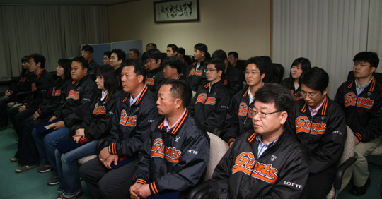 롯데 자이언츠는 24일 오전 10시 부산 사직구장내 선수단 회의실에서 창립 제25주년 기념식을 가졌다. 이날 하영철 대표이사는 인사말을 통해 "다양한 이벤트와 마케팅으로 보다 나은 서비스를 제공해 팬들을 끌여 들여야 한다"고 밝혔다. 이날 기념식에서는 운영팀 김태민 계장이 대상을 수상했다. 윤동배 스카우트팀장, 조성우 과장, 경영관리팀 김은진 씨, 이원영 씨가 장기 근속 사원 표창을 받았다. 모범사원에는 강민철 트레이너와 마케팅팀 강명숙 씨가 선정됐다. 구단 마스코트인 의 이름짓기 등 올 시즌 다양한 이벤트를 추진한 홍보팀 김건태 씨가 공로상을 차지했다. what@osen.co.kr 롯데 자이언츠 제공.