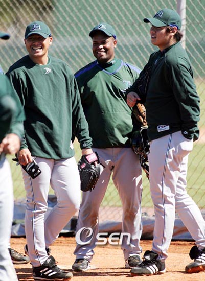 [OSEN=세인트피터스버그, 김형태 특파원] "제국아, 오늘 형이 이기면 네가 통역해줘야 한다". 지난 22일(한국시간) 클리블랜드 인디언스전을 앞두고 서재응(30.탬파베이 데블레이스)은 팀 후배 유제국(24)에게 이렇게 말했다. 유제국의 영어 실력을 짐작할 수 있는 말이었다. 미국 생활 13년째인 박찬호(34.뉴욕 메츠)를 제외하면 한국 선수 중 가장 영어를 잘하는 선수는 유제국이라는 게 주위의 전언이다. 지난 2001년 시카고 컵스에 입단한 그는 올해로 미국생활 7년째를 맞는다. 유제국의 영어를 들어보면 눈이 휘둥그레진다. 발음, 억양, 상황에 맞는 단어 선택 등 모든 게 '네이티브(원어민) 수준'이다. 훈련 도중 동료, 코치들과 욕설을 섞은 농담을 주고받는 건 물론이고, 식당에서 원하는 음식을 구미에 맞게 주문하는 솜씨가 보통이 아니다. 바로 옆 라커를 쓰는 서재응(30)이 인정할 정도다. 서재응은 "우리들 중에 제국이가 영어를 제일 잘한다. 우리끼리 있으면 제국이가 다 알아서 한다"고 했다. 유제국이 처음부터 영어를 잘 했던 건 아니다. 그는 "처음에는 말이 안 나오는 건 물론이고 들리지도 않았다. 미국생활 3년째가 되니까 조금씩 얘기가 들리더니 5년째가 되면서부터 말이 자연스럽게 나오더라"고 했다. 유제국이 말을 잘하는 이유는 처음부터 두려움이 없었기 때문. 영어에 흥미가 많았던 그는 '히어링'보다는 '스피킹'부터 시작한 케이스다. "마이너리그 시절 동료들이 한 마디씩 하면 무조건 따라했다. 아기들이 말을 배울 때처럼 모든 걸 따라했더니 재미 있더라. 그러면서 문장을 하나씩 익혔고 시간이 지나니까 지금처럼 말을 할 수 있게 됐다"고 그는 설명했다. 유제국은 원래 영어를 좋아했다. 고교시절 영어에 유독 관심을 갖고 공부를 했다. 힘든 운동을 하면서도 고교 1학년 때 영어 시험에서 80점을 받을 만큼 언어 감각이 뛰어났다. 한국 사람보다 미국인과 주로 어울린 것도 실력 향상의 요인이다. 유제국은 "미국에서 생활하면서 이상하게 한국 사람들을 사귈 기회가 별로 없었다. 친구들이 생겼다가도 선수인 내가 다른 지역으로 이동하는 경우가 많아 금방 교우관계가 중단됐다"고 말했다. 좋아하는 영화를 자주 본 것도 큰 도움이 됐다. 마이너리그 시절 주로 버스로 이동하는 데 장시간 이동하다보니 버스 안에서 영화를 보는 게 낙이었다. 한글 자막이 없는 영화를 보면서 대사를 따라하다보니 '살아 있는' 영어를 습득할 수 있었다. 궁금하면 바로 물어봐야 직성이 풀리는 성격도 한 몫 했다. "어차피 나는 외국인이라는 걸 미국인들도 다 안다. 걔들이 말을 건넸을 때 모르는 단어가 있으면 무조건 물어본다. 그러면 알기 쉽게 풀어서 설명해준다. 사전을 찾는 것보다 훨씬 효과적이었다". 그런 식으로 지내보니 이제는 원하는 말을 자유자재로 할 수 있게 됐다. 표현을 상황에 맞게 응용해서 할 수 있는 경지에 이르렀다. 그런 유제국도 꿈이 있다. 먼 미래에 유니폼을 벗은 뒤 대학에 들어가 체계적으로 공부하는 것이다. "운동을 하다 보니 많이 배우지 못한 게 사실이다. 야구를 그만 둘 때면 아이들도 생길 텐데 부끄럽지 않은 아빠가 되기 위해선 공부를 해야 한다". 옆에서 듣던 서재응도 동의했다. "사실 우리가 쓰는 영어가 완벽하지는 않다. 일상생활에 전혀 지장은 없지만 고급 영어는 아니다. 선수들과 어울리다보니 주로 속어를 많이 쓰기 마련이다. 나중에 우리 아이들을 제대로 교육시키기 위해서는 우리도 좀 더 수준 있는 영어를 할 줄 알아야 한다. 그래서 우리 부부는 지금부터 제대로 된 영어교습을 받기로 했다". 그런 유제국도 인정하는 '영어 고수'가 있다. 지금 LG에서 뛰는 봉중근(27)이다. 유제국은 "중근이 형은 영어를 제대로 배운 케이스다. 우리가 쓰는 영어보다는 훨씬 품격 있는 영어를 구사한다. 나는 중근이 형에 비해 한 수 아래다"며 엄지손가락을 치켜세웠다. workhorse@osen.co.kr 유제국이 서재응 및 동료와 함께 이야기를 나누고 있는 모습.