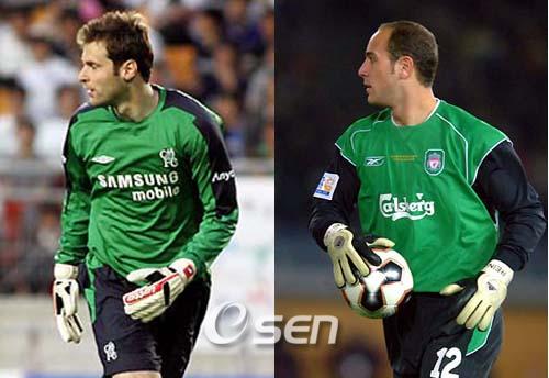'지루함 속에 빛났던 선방 대결'. 경기는 지루했다. 하지만 양 팀 골키퍼들의 선방은 빛났다. 26일 새벽(이하 한국시간) 영국 런던 스탬퍼드 브리지에서 열린 첼시와 리버풀과의 2006~2007 UEFA 챔피언스리그 4강 1차전에서 최고 활약을 펼친 선수들은 바로 양 팀의 골키퍼였다. 리버풀의 골키퍼 페페 레이나는 전반 7분 프랑크 람파드의 날카로운 슈팅을 감각적으로 막아섰다. 15분에는 리세의 실수를 놓치지 않은 드록바의 좋은 찬스를 막아냈다. 비록 전반 29분 조 콜에게 선제 결승골을 내주기는 했지만 전반 내내 안정적인 선방을 보여주며 첼시의 공세를 1골로 끊었다. 후반 들어서는 레이나와 반대편에 서 있던 첼시의 골키퍼 페트르 체흐가 빛났다. 체흐는 장신을 이용해 공중볼에서 강한 모습을 보여주었고 감각적인 선방을 거듭했다. 특히 후반 7분 스티븐 제라드의 날카로운 왼발 슈팅을 막아낸 것은 신기에 가까웠다. 제라드의 슈팅 자체가 워낙 날카로웠던 데다 수비수들로 인해 시야가 가렸음에도 불구하고 막아낸 것이기 때문. 레이나 역시 후반 35분 드록바의 패스를 받은 프랑크 람파드의 날카로운 슈팅을 막아내며 지지 않는 모습이었다. 서로를 너무나 잘 알기 때문에 탐색전을 거듭해 경기를 지루하게 만들었던 첼시와 리버풀. 양 팀 골키퍼의 선방 대결만이 지루했던 경기에서 유일한 볼거리였다. bbadagun@osen.co.kr 체흐-레이나.