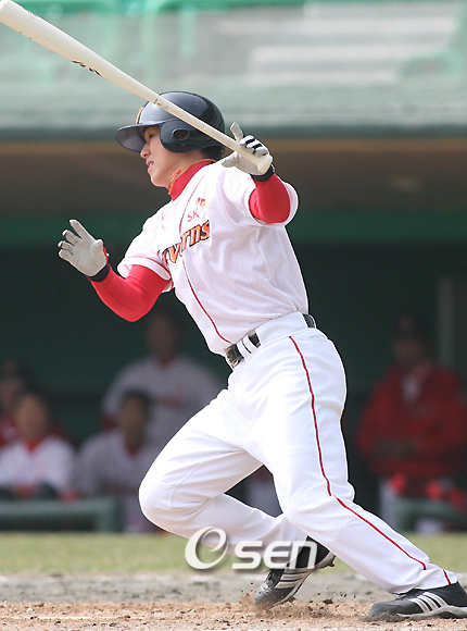 SK 와이번스가 화끈한 타격을 선보이며 LG 트윈스를 꺾고 전날 패배를 설욕했다. SK는 29일 인천 문학구장에서 열린 LG와의 홈경기에서 16안타를 몰아치며 12-4로 승리를 거뒀다. 반면 LG 선발 하리칼라는 제구력 난조로 대량 실점한 뒤 강판됐다. SK 타자들은 경기 초반부터 제구력 난조로 흔들리는 하리칼라를 맹폭했다. 1회 톱 타자 김강민-박재상의 연속 안타로 만든 무사 1,2루에서 3번 김재현의 우전 안타로 선취점을 뽑았다. 이어 2사 2루에서 정근우의 중전 안타와 상대 수비 실책으로 두 점을 얻은 뒤 박경완의 적시타로 한 점을 추가, 4-0으로 앞서 갔다. 2회에도 타자 일순하며 5점을 추가, 9-0으로 일찌감치 승부를 결정지었다. SK는 7회에도 선두 타자 박재홍의 좌중간 안타와 박경완의 2루타로 만든 1사 2,3루에서 '소년 장사' 최정이 2타점 적시타를 날려 2점을 추가했다. 이어 대타 김태균의 좌전 안타와 김동건의 유격수 앞 땅볼로 한 점을 추가, LG 마운드를 사정없이 난타했다. 선발 로마노는 6⅔이닝 6피안타 1볼넷 4탈삼진 1실점으로 시즌 2승을 거뒀다. 3루수 겸 8번타자로 출장한 최정은 4타수 3안타 3타점으로 불방망이를 과시했다. LG는 6회 박용택의 우중간 솔로 홈런(비거리 115m)과 8회 박경수의 2타점 적시타에 이어 9회 1점을 뽑아 4점을 만회하는 데 그쳤다. 선발 하리칼라는 1⅔이닝 9피안타 3볼넷 9실점(6자책점)으로 난조를 보이며 패전 투수가 됐다. what@osen.co.kr 최정.