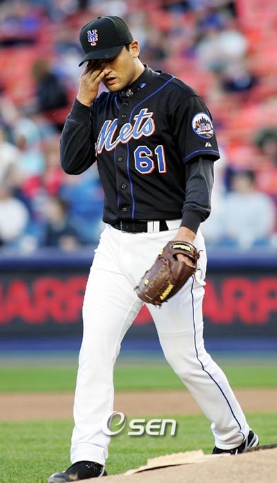 [OSEN=세인트피터스버그, 김형태 특파원] 어렵게 기회를 잡은 박찬호(34.뉴욕 메츠)가 시즌 첫 메이저리그 선발등판에서 '악몽'을 경험했다. 어깨 부상으로 부상자명단(DL)에 등재된 올란도 에르난데스(38) 대신 긴급 호출된 박찬호는 1일(한국시간) 셰이스타디움에서 열린 플로리다 말린스와의 홈경기에 선발등판했으나 4이닝 동안 홈런 2개 포함 6피안타 7실점에 그치며 패전투수가 됐다. 삼진 4개를 잡았지만 볼넷 2개가 '독'이 됐다. 시범경기의 재판이었다. 첫 두 이닝을 완벽하게 틀어막은 뒤 갑작스럽게 빠진 난조. 투구수 73개 가운데 스트라이크가 39개에 불과할 정도로 제구력 난조에 시달렸다. 폭투도 한 개 있었다. 수비진의 엉성한 플레이도 이날 등판이 '재앙'이 되는 데 한 몫 했다. 시범경기와 마찬가지로 초반 페이스는 좋았다. 특히 첫 두 이닝은 완벽했다. 6타자를 상대로 삼진 2개를 빼앗으며 기대에 부응하는 투구를 펼쳤다. 1회 공 1개 2회에는 11개로 간단하게 잡아내 '롱런'도 기대할 만했다. 그러나 3회 2사 후 박찬호는 갑자기 난조에 빠졌다. 투수 스캇 올슨을 중전안타로 내보내더니 갑자기 스트라이크존을 잃었다. 헨리 라미레스와 댄 어글라를 연속 스트레이트 볼넷으로 내보내 만루 위기를 자초하더니 미겔 카브레라에게 2타점 적시타, 마이크 제이콥스에게 중견수 앞 2루타를 연속 허용했다. 카브레라의 타구는 메츠 2루수 데미언 이즐리가 점프로 잡아내는 듯했지만 글러브를 맞고 튀었고, 제이콥스의 2루타는 유격수 호세 레예스의 글러브를 교묘히 피해 유격수 중견수 2루수의 한가운데에 떨어졌다. 셰이스타디움 외야 좌측에서 우측으로 강하게 분 바람 탓이었지만 모두 안타로 기록됐다. 박찬호는 계속된 2사 2,3루에서 조시 윌리엄스에게 2타점 우전안타를 허용한 뒤 조 보차드를 우익수 플라이로 잡고 간신히 이닝을 끝낼 수 있었다. 3회에만 무려 무려 57개(스트라이크 29개)의 공을 던졌다. 3회에만 5실점한 박찬호는 기운이 빠진 듯 4회 홈런 2방을 허용하고 결국 강판의 빌미를 제공했다. 1사 뒤 알프레도 아메자가에게 우월 솔로포, 2사 후 라미레스에게 좌월 솔로아치를 얻어맞아 7실점째를 기록한 것. 결국 초반에 경기가 기울자 윌리 랜돌프 감독은 4회말 공격 때 루빈 고테이를 대타로 투입하면서 박찬호를 경기에서 끌어냈다. 5회부터 메츠는 암비오릭스 부르고스, 애런 실리, 스캇 쇼언와이스를 줄줄이 투입했지만 초반 벌어진 점수차를 극복하지 못하고 6-9로 패했다. 이제 한 경기에 불과하지만 박찬호의 방어율은 15.75가 됐다. workhorse@osen.co.kr 셰이스타디움(뉴욕)=주지영 특파원 jj0jj0@osen.co.kr
