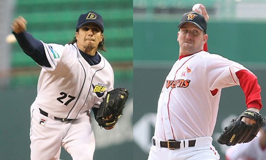 신구 최고 용병 투수를 가리자. 2일 문학 SK-두산전은 양 팀의 제1선발 맞대결이다. SK는 4연승의 '신(新)에이스' 케니 레이번을, 두산은 '이닝이터' 다니엘 리오스를 예고했다. 레이번은 올 시즌 5경기에 등판해 4승 무패 평균자책점 1.97을 기록중이다. 특히 4승이 전부 홈구장 문학에서 거둔 승리다. 김성근 감독은 2위에 3경기나 앞서는 1위인데도 로테이션대로 레이번을 올려 리오스와 맞불을 놓았다. 그만큼 '필승카드'로서 레이번을 신뢰한다는 방증이다. 반면 리오스는 지난 2002년 한국 프로야구에 발을 디딘 이래 통산 70승(56패 13세이브)을 올리고 있다. 최근 3년 연속 200이닝 이상을 투구한 리오스는 올 시즌에도 5경기에 등판해 33이닝을 투구했다. 2승 2패에 평균자책점은 3.27이다. SK와 두산의 두 김 감독은 두 투수의 2일 선발을 감안해 1일 투수진을 운용했다. 특히 두산은 불펜에서 가장 좋은 구위를 보여 온 임태훈을 2⅓이닝이나 썼다. 김성근 감독도 마무리 정대현을 8회부터 올렸다. 결국 레이번과 로마노에게 최소 6이닝 이상의 투구는 예상하고 있다는 의미다. 그런만큼 기회가 왔을 때, 양 팀 타선의 집중력에 따라 승패가 엇갈릴 전망이다. 특히 승보다 패가 5개나 많은 두산으로선 리오스 등판 경기를 잃는다는 것은 상상할 수 없다. sgoi@osen.co.kr 리오스-레이번.