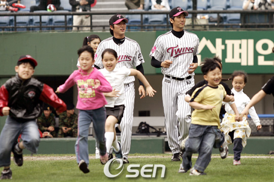 갈수록 열기를 더해가는 프로야구가 어린이날을 맞아 푸짐한 이벤트를 벌인다. 오는 5일 어린이날을 맞이하여 잠실(두산-LG) 사직(롯데-삼성) 대전(한화-KIA) 수원(현대-SK)구장에서 열리는 프로야구에서 어린이 팬들을 위한 특별 팬서비스를 다양하게 준비됐다. ◆잠실구장-어린이팬 두산 홈유니폼 무료 증정 한지붕 두 가족인 LG 트윈스와 잠실에서 경기를 펼치는 두산 베어스는 어린이날을 맞이하여 와부초등학교 ‘줄넘기 공연단’의 공연 및 태권도 시범단 ‘코리아 타이거즈’의 태권도 퍼포먼스를 진행한다. 또한 ‘무궁화꽃이 피었습니다’, ‘공 굴리기’ 게임에 선수단이 직접 참여하여 어린이팬들에게 특별한 추억을 안겨줄 예정이며, 어린이와 동반한 가족 10팀이 참가하는 풍선터뜨리기 행사도 준비되어 있다. 전광판을 통해서는 홍성흔, 김동주 등이 어린이들에게 전하는 어린이날 축하 멘트가 상영되며 선수단 사인볼도 선물한다. 한편 영화 ‘방울토마토’에서 주연을 맡은 김향기 어린이가 특별 시구를 할 계획이다. ◆사직구장-다양한 이벤트와 캐릭터 인형 선물 롯데 자이언츠는 85년 10월 사직구장 개장 이래 처음 열리는 어린이날 경기를 맞이하여 다채로운 팬서비스로 어린이들을 맞이한다. 먼저 정오부터 야외광장에서 페이스 페인팅과 매직풍선을 선물하고 어린이들이 좋아하는 가수를 모방한 이미테이션 가수 공연 및 어린이를 위한 전자현악 3중주 공연이 열린다. 또한 비보이 공연 및 어린이 댄스경연대회와 함께 선수단 팬사인회도 실시된다. 장내에서는 12시 50분부터 전광판을 통하여 애니메이션 ‘뽀로로와 친구들’이 상영되며 선수들과 함께 하는 2인3각 릴레이, 힙합댄스 공연, 갈매기 캐릭터 ‘누리’와 유치원생 200명이 함께하는 특별 춤공연을 준비하고 있고, 클리닝타임에는 캐릭터 마임쇼도 펼쳐진다. 이날 입장하는 어린이 팬들에게는 일반석 무료입장 및 특별지정석과 지정석 50% 할인 혜택이 주어지며, 갈매기 캐릭터인 ‘누리’와 ‘아라’ 인형 4000개와 선수 사인볼 2000개를 증정한다. ◆대전구장-LCD TV 등 푸짐한 경품 선물 어린이날 KIA와 경기를 펼치는 한화 이글스는 오전 11시 30분부터 장외무대에서 어린이 가수왕 선발대회, 솜사탕 증정, 페이스 페인팅, 캐릭터 & 치어리더와 포토타임, 삐에로 요술풍선 등의 행사가 진행되며 외야와 3루 출입구 주변에 에어 놀이기구를 설치하여 어린이들이 자유롭게 즐길 수 있는 놀이공간을 마련하였다. 그라운드에서는 오후 1시 20분부터 가족과 함께하는 어린이 O/X퀴즈, 코스프레 댄싱공연이 열리고 1루측 응원석에서는 꼬마 치어리더의 운영과 함께 어린이 댄스경연대회도 함께 실시할 예정이다. 이날 야구장을 찾는 어린이를 대상으로 키재기 도구 3000개와 어린이 새총 이벤트를 통하여 티셔츠 20장을 증정하며, 전 관중을 대상으로 LCD TV 1대와 드럼세탁기, 아이팟, 아웃백 식사권 등의 특별 경품이 제공된다. 또한 이날 ‘Eaglet Kids Club’ 최초 가입자인 조현곤 어린이가 특별 시구를 실시한다. ◆수원구장--영화관람권 등 선물 수원구장에서 SK와 경기를 벌이는 현대 유니콘스는 어린이 날을 맞이하여 CGV 및 인터파크 영화관람권 10매와 H-MALL 적립금(5만 원) 5명, 도로코면도기를 증정하며 에어건쇼 및 탕수육 배달 이벤트를 진행한다. 지난해 잠실 구장 어린이날 행사 모습.