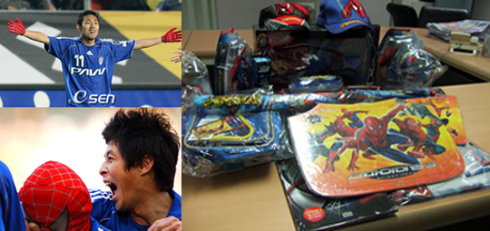 1골 1도움으로 최근 2경기 연속 공격포인트를 올리며 '스파이더맨 세리머니'를 선보였던 '폭주기관차' 김대의(33, 수원 삼성)가 스파이더맨 종합선물 세트를 받았다. 수원은 4일 영화 스파이더맨의 배급사인 소니 픽처스 릴리징 부에나 비스타 측에서 스파이더맨 책가방과 신발, 인영, 모자, 화이트보드 등 스파이더맨 관련 상품 50여 개와 감사의 편지를 전해달라고 보내왔다고 밝혔다. 김대의가 공격포인트를 올리면서 스파이더맨 세리머니를 선보였던 것은 6살짜리 아들 원준이를 위했던 것. 스파이더맨을 너무나도 좋아하는 아들이 골을 넣을 때마다 자신이 제일 좋아하는 스파이더맨 가면을 써달라고 아빠에게 부탁했고 김대의는 지난달 28일 제주 유나이티드와의 경기에서 박성배의 선제 결승골을 어시스트한 뒤 처음 이 가면을 썼다. 또 김대의는 지난 2일 FC 서울과의 컵대회 홈경기에서 팀의 두 번째 골이자 이날 결승골을 넣은 뒤 스파이더맨 장갑을 끼고 골 세리머니를 펼쳤고 "스파이더맨 캐릭터 상품이 없다"고 너스레를 떨기도 했다. 한편 김대의는 "대가를 바라고 한 세리머니가 아니었는데 이렇게 선물까지 받아 쑥스러우면서도 신경을 써준 영화사 측에 감사한다"며 "어린이날에 광주 원정경기를 치르게 돼 아빠 체면이 말이 아니었는데 깜짝 선물 덕분에 아빠 체면이 살았다"고 함박웃음을 지었다. tankpark@osen.co.kr