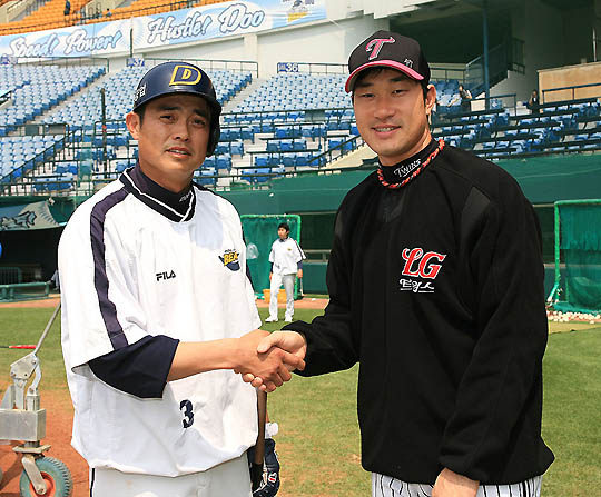 지난 4일 두산과의 잠실경기에서 두산 안경현(37)과 몸싸움을 벌였던 LG 좌완 투수 봉중근(27)이 5일 경기 전 안경현과 김경문 감독 및 김동주에게 찾아가 정식으로 사과했다. 이날 팀 주장 이종렬과 함께 훈련 중이던 안경현을 찾은 봉중근은 “고의는 아니었지만 어쨌든 머리 위쪽으로 공이 날아가 어제 상황을 초래한 것 같아서 안경현 선배님께 정말 죄송하다”며 안경현에게 사과했다. 봉중근은 “과분하게 사랑해주시는 팬 여러분들께도 정말 죄송하고, 앞으로 야구 선수로서 그라운드에서 팬들에게 좋은 모습 보일 수 있도록 노력하겠습니다”고 말했다. sun@osen.co.kr LG 트윈스 제공.