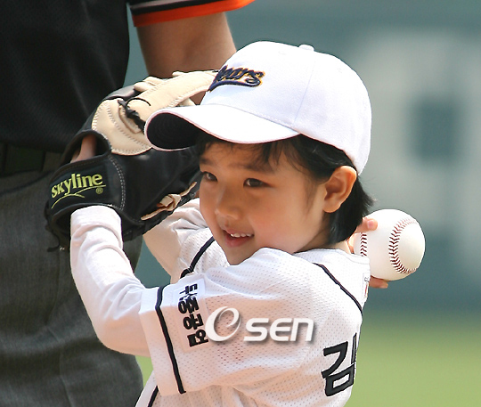 아역 스타 김향기가 5일 어린이날을 맞아 잠실야구장 두산과 LG의 프로야구 라이벌 경기에서 시구를 했다. 특별히 준비한 두산 유니폼을 깜찍하게 차려입고 제대로 투구 폼을 흉내내 많은 관중들의 박수를 받았다. 아역배우의 프로야구 시구는 이번이 처음이다. 영화 '마음이'와 드라마 '소금인형', 각종 CF 출연 경력의 김향기는 '고맙습니다'의 서신애, '누나'의 김유정과 함께 아역배우 트로이카로 활약하고 있다. 올해 초등학교에 입학한 어린 소녀임에도 감정을 듬뿍 담은 연기가 성인 배우못지않다는 평이다. 이번 시구는 영화 홍보차 진행됐다. 아빠보다 할아버지를 더 좋아하는 6살 소녀의 이야기를 그린 '방울토마토(정영배 감독, P&J 시네마 제작) 개봉을 앞두고 야구장 이벤트에 나선 것. 김향기의 할아버지 역으로는 원로배우 신구가 출연했다. mcgwire@osen.co.kr 손용호 기자