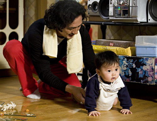 최근 영화와 드라마에서 아역배우들의 활약이 두드러지고 있다. 아역 배우를 주연급으로 내세우는 영화들이 많아지고, TV 드라마 속에서의 비중도 갈수록 높아지는 추세다. 이 와중에 겨우 7개월 된 아기까지 시청자들의 시선을 사로잡기 위해 나서 눈길을 끌고 있다. OCN TV무비 ‘키드갱’의 철수 역을 맡은 임예준이 바로 그 주인공. 임예준은 7개월 된 아이다. 비록 말은 못하지만 능청스런 표정연기가 일품으로 성인연기자 뿐 아니라 스태프들의 시선을 사로잡고 있다. ‘키드갱’은 한 때 전국을 평정했던 ‘피의 화요일파’가 공소시효 6개월을 앞두고 우연히 젖먹이 아기를 맡게 되면서 벌어지는 해프닝을 담은 갱스터 육아 코미디. 극 중 철수는 피의 화요일파 일당에게 가족의 소중함을 깨닫게 해주는 중요한 역할을 한다. 예준이는 낯가림이 없고 순한 성격이라 촬영장에서 인기 만점이다. 손창민은 “아기와 연기를 많이 해봤는데 이렇게 순한 아기는 처음이다. 예준이의 재롱 때문에 힘든지 모르고 촬영에 임하고 있다”고 애정을 과시했다. 조찬주 감독은 “카메라를 쳐다보며 생글생글 웃는 모습에 반해 예준이를 캐스팅했다. 비록 말은 못하지만 표정만큼은 베테랑이다”고 만족감을 드러냈다. 동명의 원작 만화를 바탕으로 제작되는 ‘키드갱’은 현재 촬영이 한창이며 5월 18일부터 매주 금요일 밤 11시에 연속 2편 씩 방송된다. pharos@osen.co.kr OCN TV무비 ‘키드갱’에 출연중인 손창민(왼쪽)과 예준(오른쪽)./온미디어 제공.